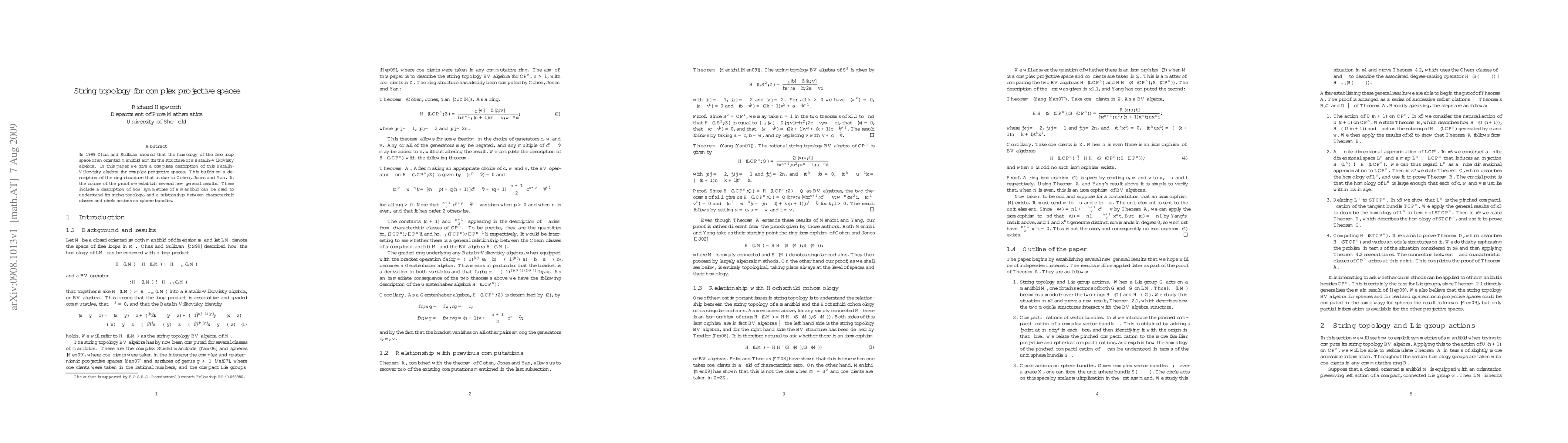 Researchers describe a complete structure of string topology algebra for complex projective spaces, building on previous work and establishing new results about symmetries and characteristic classes.