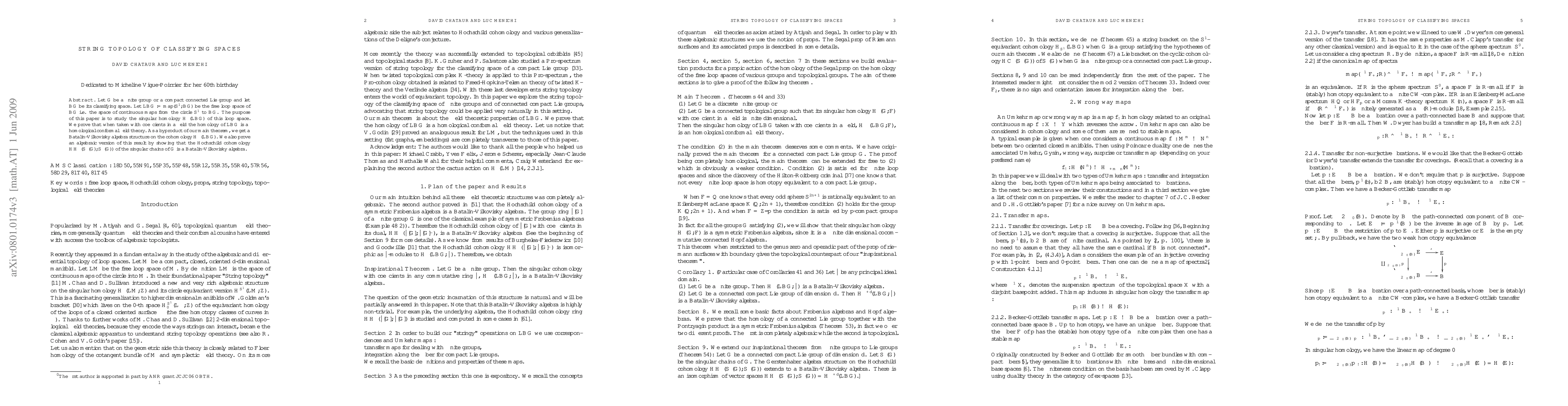 This paper investigates the singular homology of the free loop space of a classifying space, finding it to be a homological conformal field theory with implications for Batalin-Vilkovisky algebras.