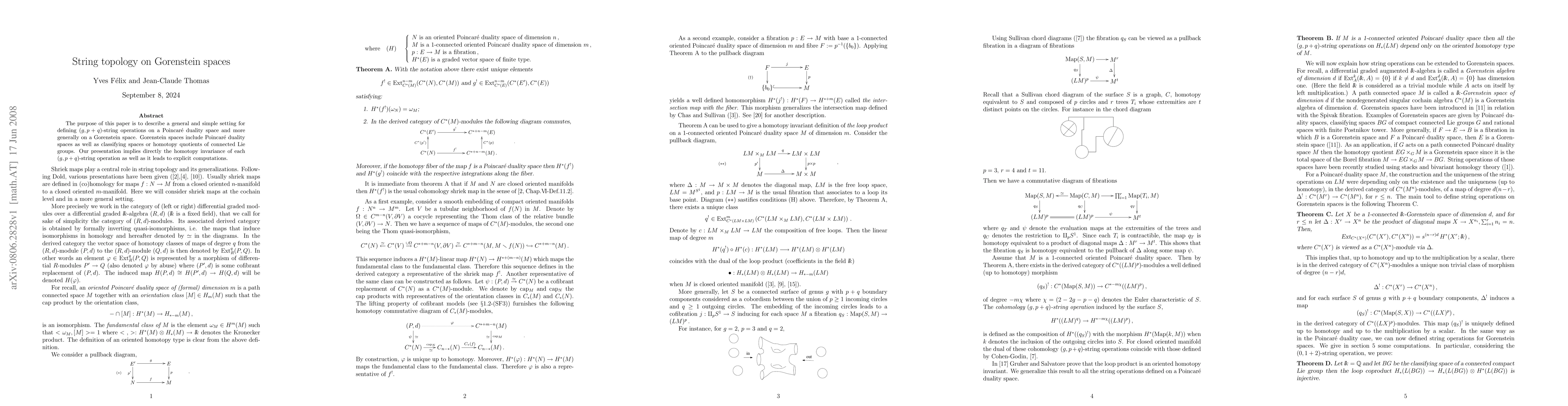 The purpose of this paper is to describe a general and simple setting for defining $(g,p+q)$-string operations on a Poincar\'e duality space and more generally on a Gorenstein space. Gorenstein spaces include Poincar\'e duality spaces as well as classifying spaces or homotopy quotients of connected Lie groups. Our presentation implies directly the homotopy invariance of each $(g,p+q)$-string operation as well as it leads to explicit computations.