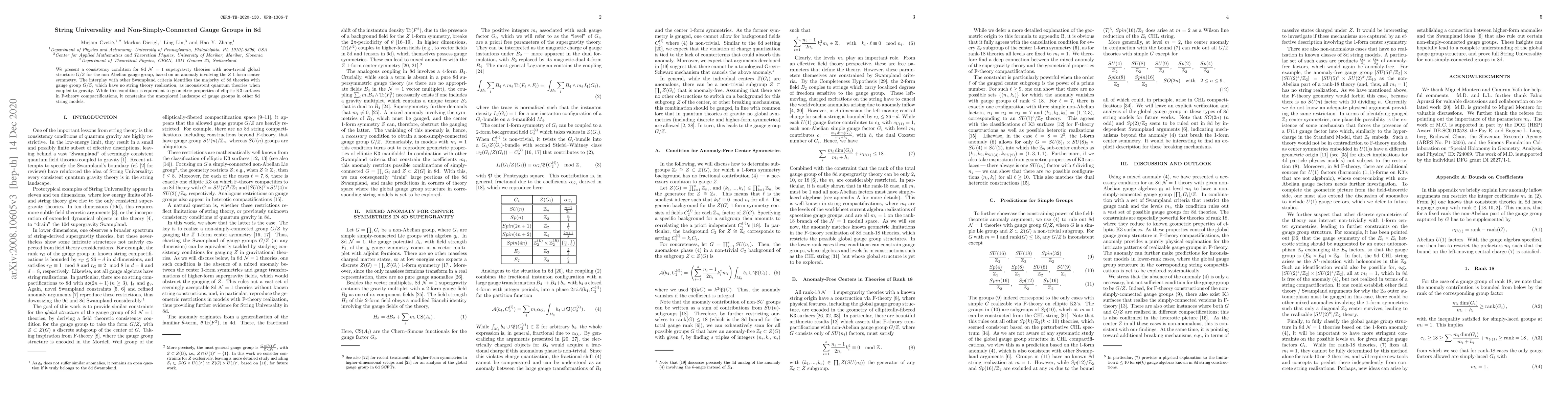 This paper establishes a consistency condition for 8d supergravity theories with non-trivial gauge groups, identifying most such theories as inconsistent when coupled to gravity due to an anomaly in the 1-form center symmetry. It connects this condition to the geometric properties of elliptic K3 surfaces in F-theory compactifications.