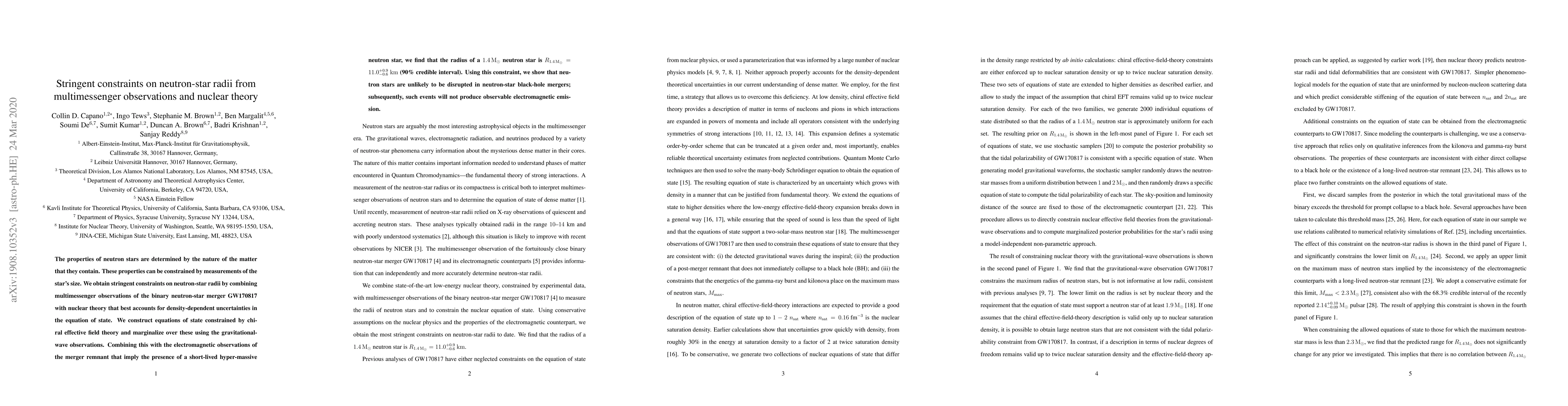 This research combines multimessenger observations of the neutron-star merger GW170817 with nuclear theory to constrain neutron-star radii, finding a radius of $11.0^{+0.9}_{-0.6}~{\rm km}$ for a $1.4\,\rm{M}_\odot$ neutron star. This suggests neutron stars are unlikely to disrupt in neutron-star black-hole mergers, implying no observable electromagnetic emission from such events.