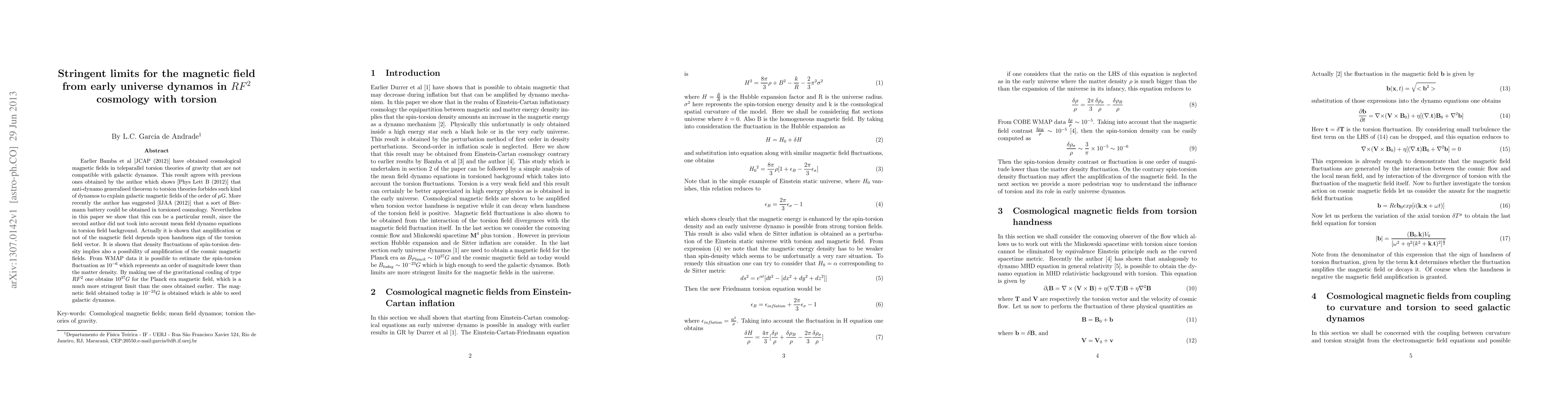 Earlier Bamba et al [JCAP (2012)] have obtained cosmological magnetic fields in teleparallel torsion theories of gravity that are not compatible with galactic dynamos. This result agrees with previous ones obtained by the author which shows [Phys Lett B (2012)] that anti-dynamo generalised theorem to torsion theories forbides such kind of dynamos to explain galactic magnetic fields of the order of ${\mu}$G. More recently the author has suggested [IJAA (2012)] that a sort of Biermann battery could be obtained in torsioned cosmology. Nevertheless in this paper we show that this can be a particular result, since the second author did not took into account mean field dynamo equations in torsion field background. Actually it is shown that amplification or not of the magnetic field depends upon handness sign of the torsion field vector. It is shown that density fluctuations of spin-torsion density implies also a possibility of amplification of the cosmic magnetic fields. From WMAP data it is possible to estimate the spin-torsion fluctuation as $10^{-6}$ which represents an order of magnitude lower than the matter density. By making use of the gravitational couling of type $RF^{2}$ one obtains $10^{37}G$ for the Planck era magnetic field, which is a much more stringent limit than the ones obtained earlier. The magnetic field obtained today is $10^{-23}G$ is obtained which is able to seed galactic dynamos.