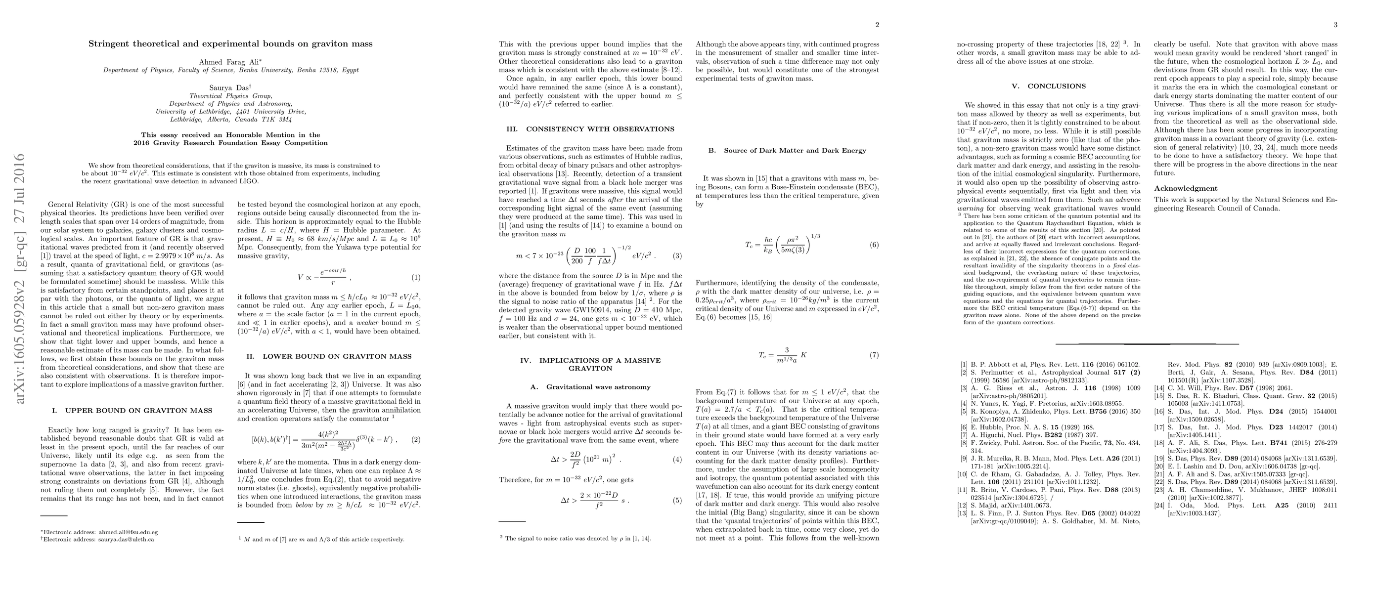 We show from theoretical considerations, that if the graviton is massive, its mass is constrained to be about $10^{-32}~eV/c^2$. This estimate is consistent with those obtained from experiments, including the recent gravitational wave detection in advanced LIGO.