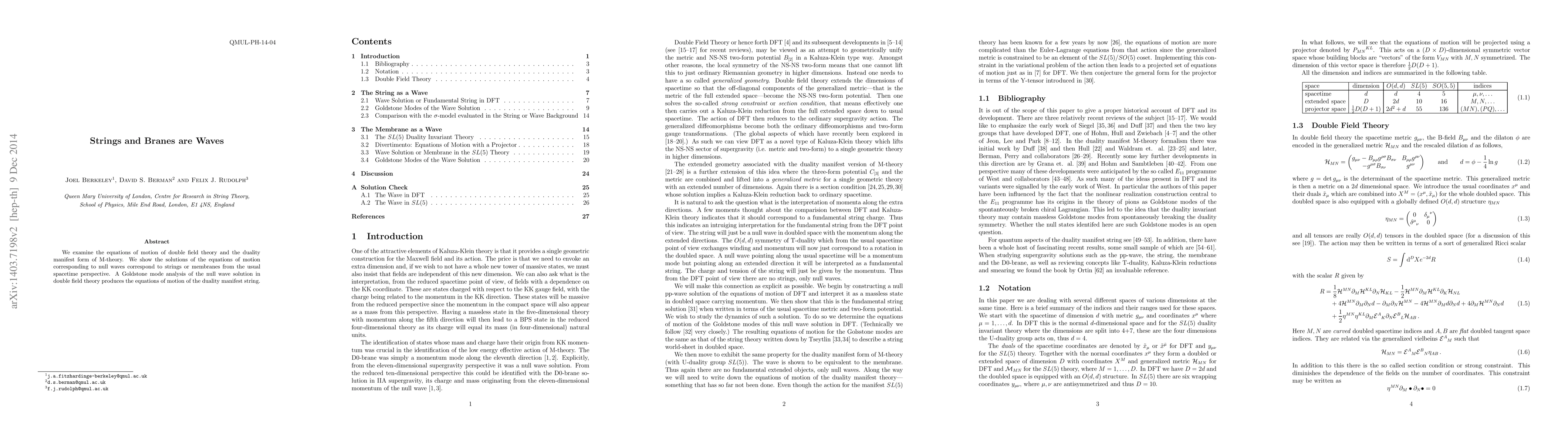 We examine the equations of motion of double field theory and the duality manifest form of M-theory. We show the solutions of the equations of motion corresponding to null pp-waves correspond to strings or membranes from the usual spacetime perspective. A Goldstone mode analysis of the null wave solution in double field theory produces the equations of motion of the duality manifest string.