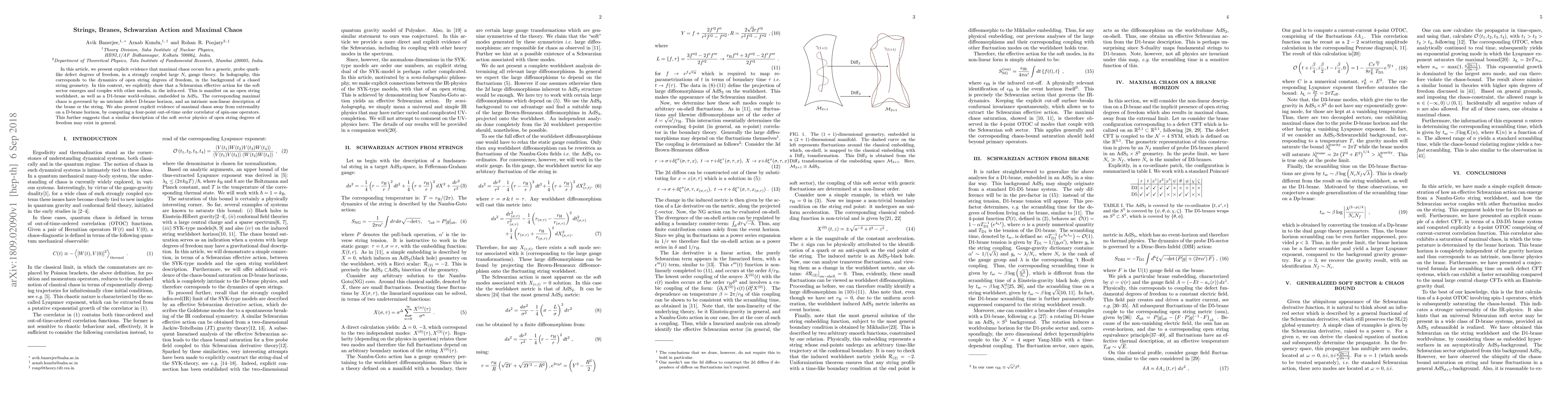This paper demonstrates that maximal chaos arises in a strongly coupled gauge theory with a probe quark-like defect, corresponding to open string dynamics in a closed string background. It shows that a Schwarzian effective action emerges in the infra-red, governing the dynamics on both an open string worldsheet and a D1-brane in AdS3, suggesting a universal description of the soft sector physics.