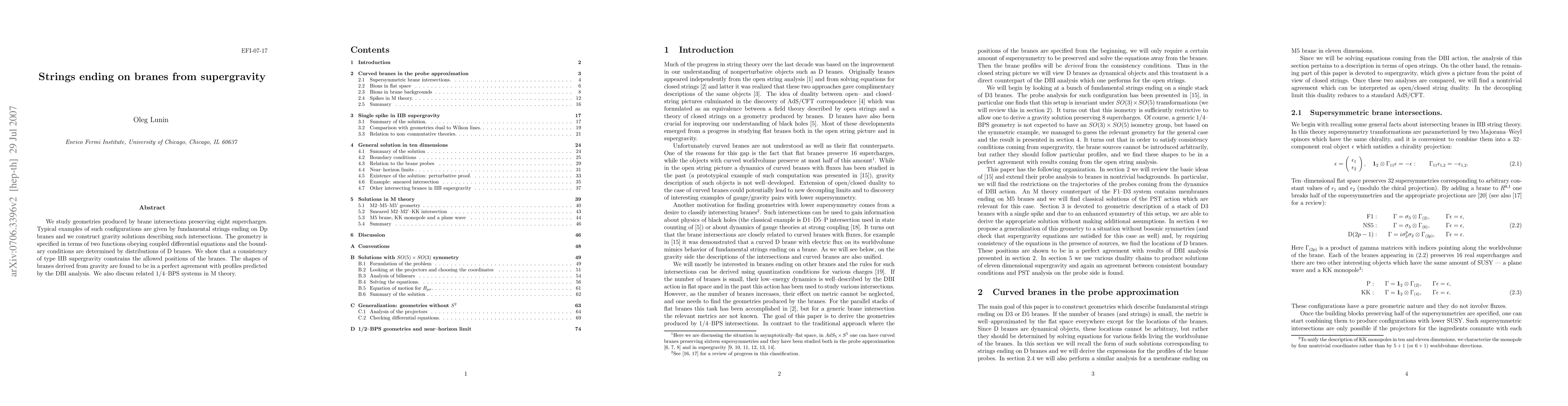 This paper investigates supergravity solutions describing intersections of branes preserving eight supercharges, specifically fundamental strings ending on Dp branes. It demonstrates that consistency within type IIB supergravity determines brane positions, with derived shapes matching predictions from DBI analysis.