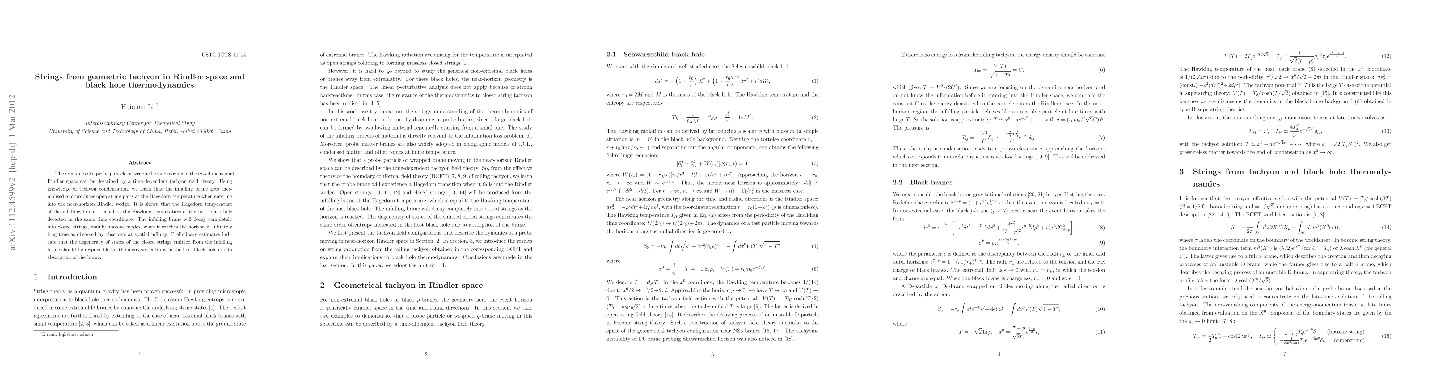 This paper explores the dynamics of a tachyon field in Rindler space, demonstrating that an infalling brane thermalizes and emits open string pairs at the Hagedorn temperature, equating this to the black hole's Hawking temperature. The study concludes that the brane's decay into closed strings contributes to the black hole's increased entropy.
