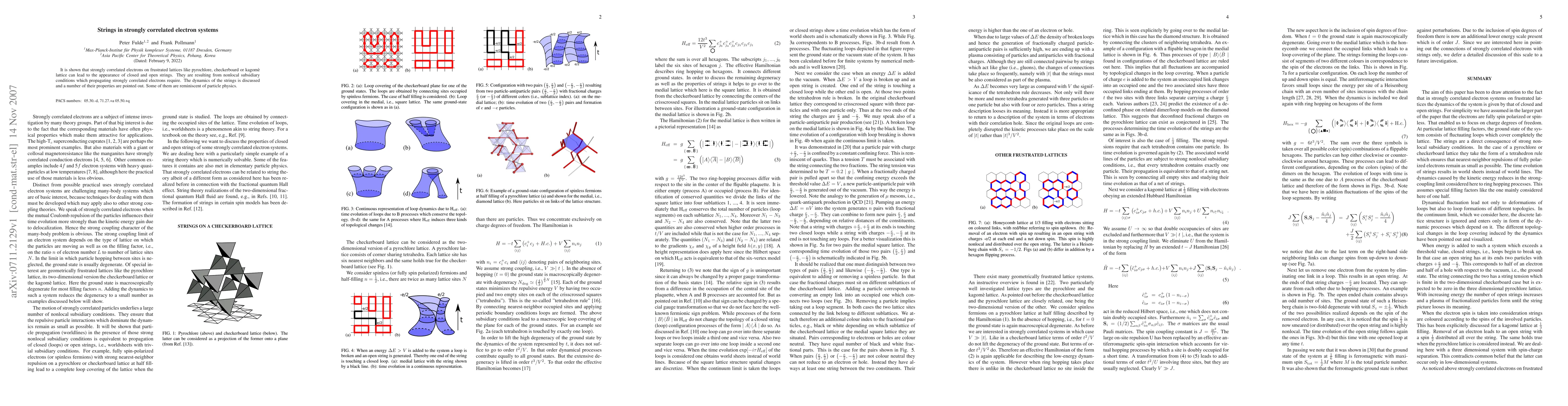 This paper explores the emergence of closed and open strings in strongly correlated electron systems on frustrated lattices, attributing their formation to nonlocal subsidiary conditions. The study discusses the dynamics and properties of these strings, noting some similarities to particle physics.