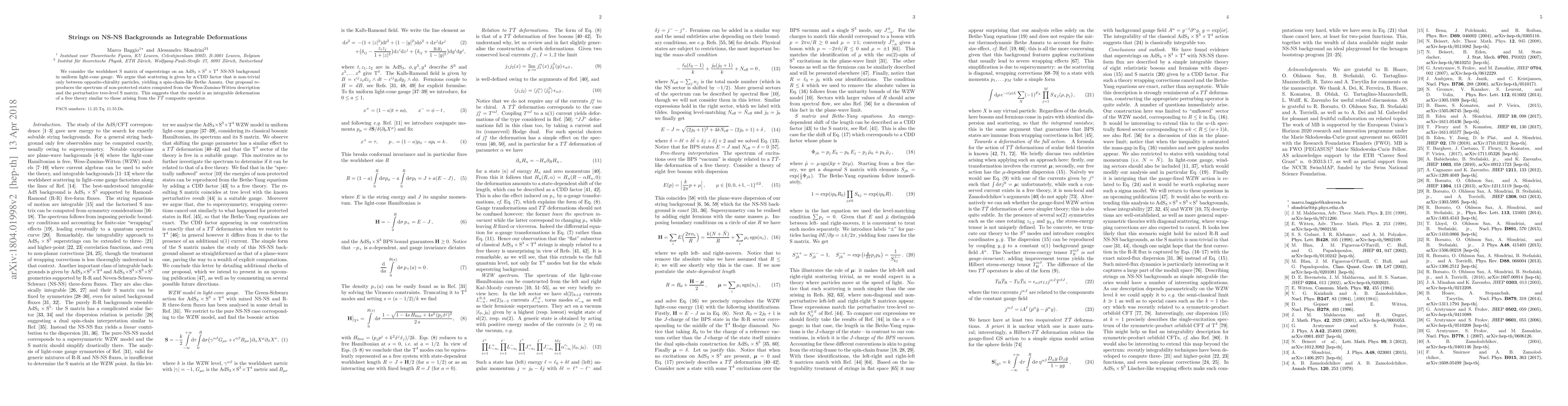 The paper presents an integrable description of superstrings on AdS3xS3xT4 NS-NS backgrounds, utilizing a CDD factor in the S matrix and a Bethe Ansatz, which could be relevant for understanding integrable deformations in string theory.