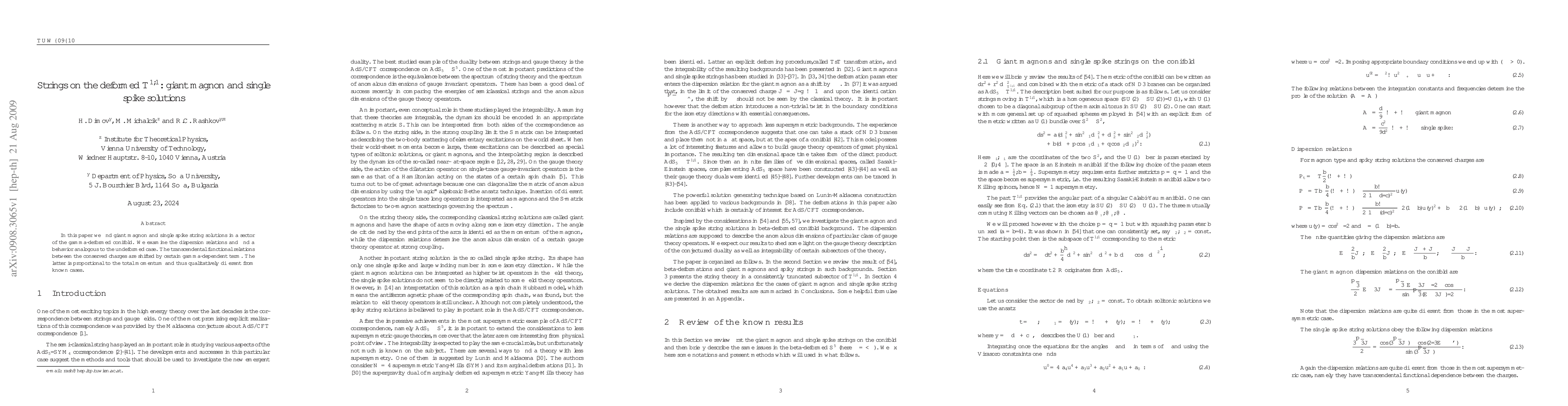 This paper identifies giant magnon and single spike string solutions in a gamma-deformed conifold, revealing analogous dispersion relations to the undeformed case, with a gamma-dependent shift in transcendental functional relations proportional to total momentum.