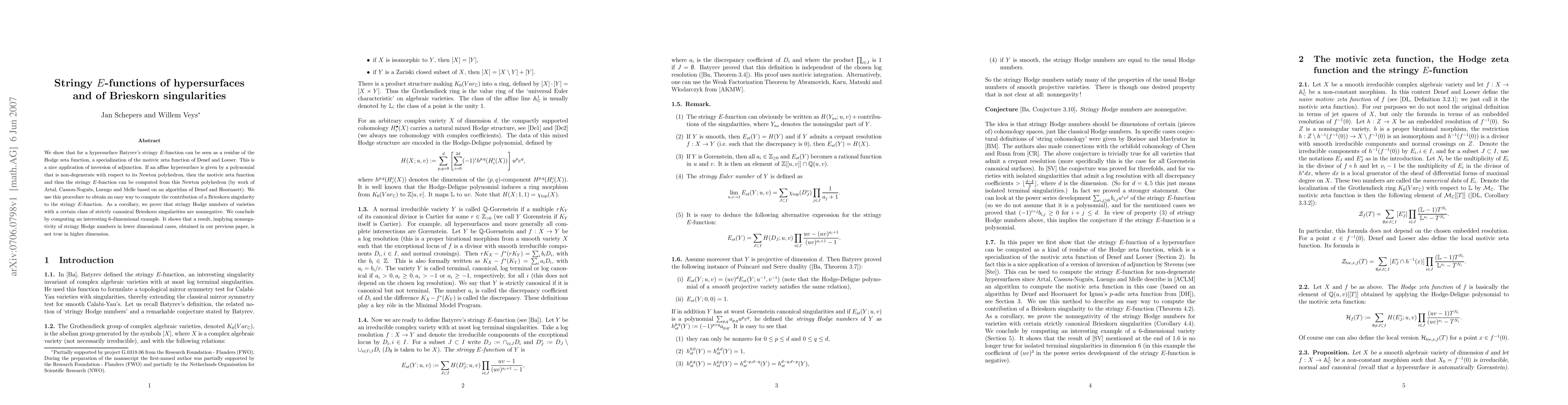 This paper demonstrates that Batyrev's stringy E-function for hypersurfaces is a residue of the Hodge zeta function, utilizing inversion of adjunction. It also provides a method for computing stringy E-functions for Brieskorn singularities based on their Newton polyhedra, proving the nonnegativity of stringy Hodge numbers for certain varieties.