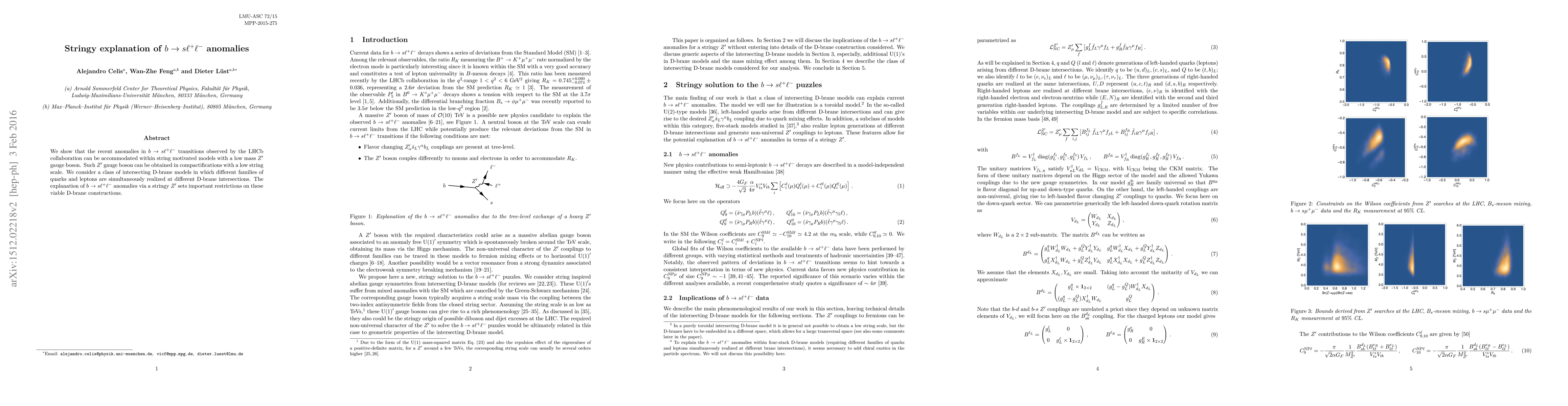 This paper explains recent anomalies in $b \to s \ell^+ \ell^-$ transitions using a low-mass $Z^{\prime}$ gauge boson from string theory models, particularly intersecting D-brane constructions. It imposes significant constraints on viable D-brane configurations.