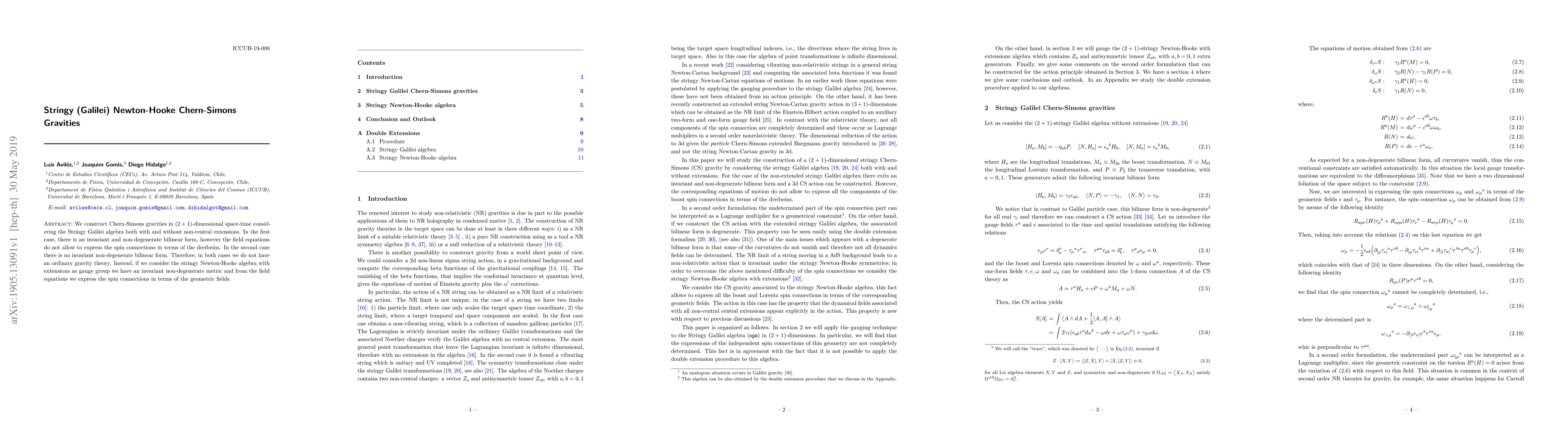 This paper constructs Chern-Simons gravities in $(2+1)$-dimensional space-time using the Stringy Galilei algebra, finding no invariant non-degenerate bilinear form in either case. It concludes that neither leads to an ordinary gravity theory, but the stringy Newton-Hooke algebra with extensions allows for an invariant metric and expresses spin connections in terms of geometric fields.
