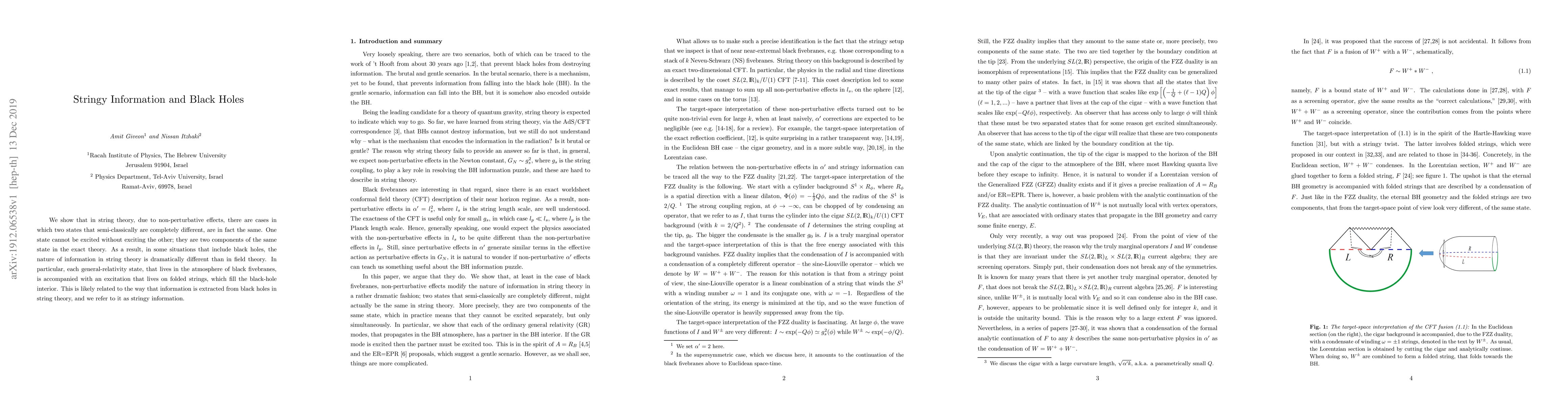 This paper explores how non-perturbative effects in string theory reveal that seemingly distinct states are actually unified in the exact theory, leading to a fundamentally different understanding of information in black holes compared to field theory. The study identifies "stringy information" as an excitation within black holes' interiors, suggesting a novel mechanism for information extraction.