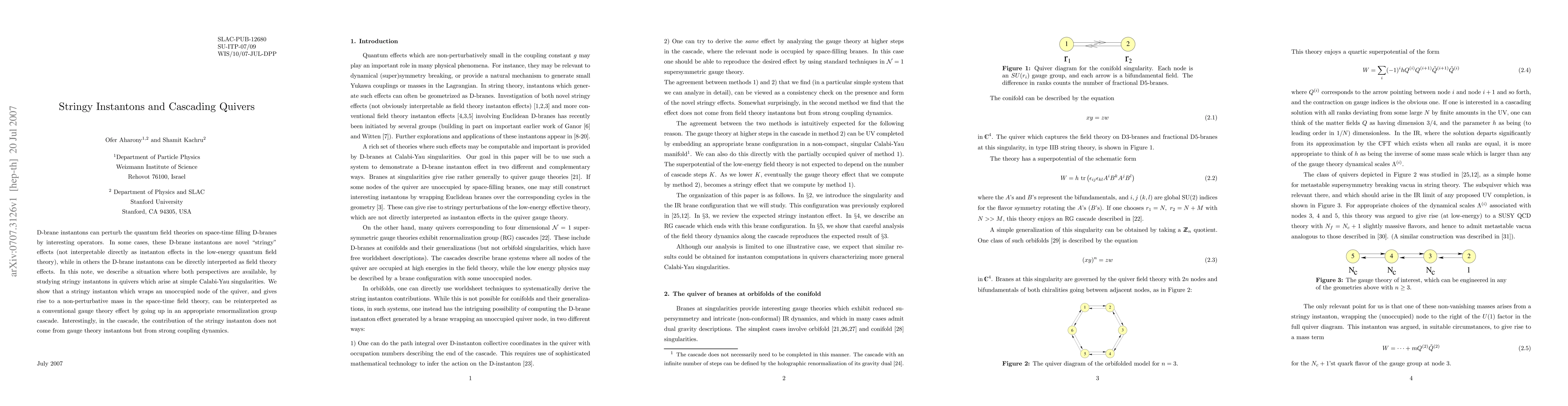 D-brane instantons can perturb the quantum field theories on space-time filling D-branes by interesting operators. In some cases, these D-brane instantons are novel "stringy" effects (not interpretable directly as instanton effects in the low-energy quantum field theory), while in others the D-brane instantons can be directly interpreted as field theory effects. In this note, we describe a situation where both perspectives are available, by studying stringy instantons in quivers which arise at simple Calabi-Yau singularities. We show that a stringy instanton which wraps an unoccupied node of the quiver, and gives rise to a non-perturbative mass in the space-time field theory, can be reinterpreted as a conventional gauge theory effect by going up in an appropriate renormalization group cascade. Interestingly, in the cascade, the contribution of the stringy instanton does not come from gauge theory instantons but from strong coupling dynamics.
