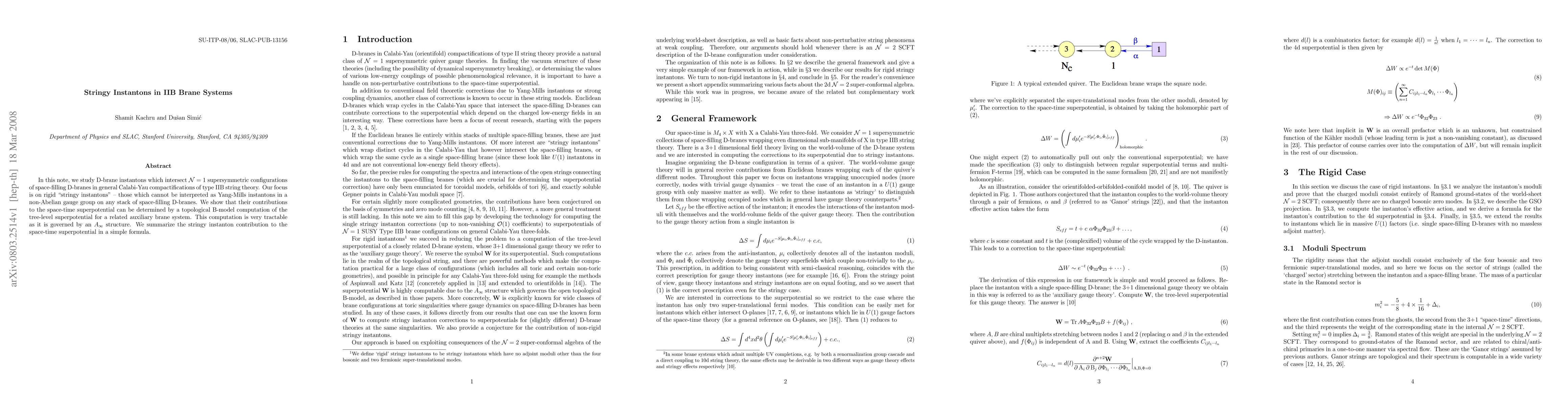 In this note, we study D-brane instantons which intersect N=1 supersymmetric configurations of space-filling D-branes in general Calabi-Yau compactifications of type IIB string theory. Our focus is on rigid ``stringy instantons'' -- those which cannot be interpreted as Yang-Mills instantons in a non-Abelian gauge group on any stack of space-filling D-branes. We show that their contributions to the space-time superpotential can be determined by a topological B-model computation of the tree-level superpotential for a related auxiliary brane system. This computation is very tractable, as it is governed by an A-infinity structure. We summarize the stringy instanton contribution to the space-time superpotential in a simple formula.