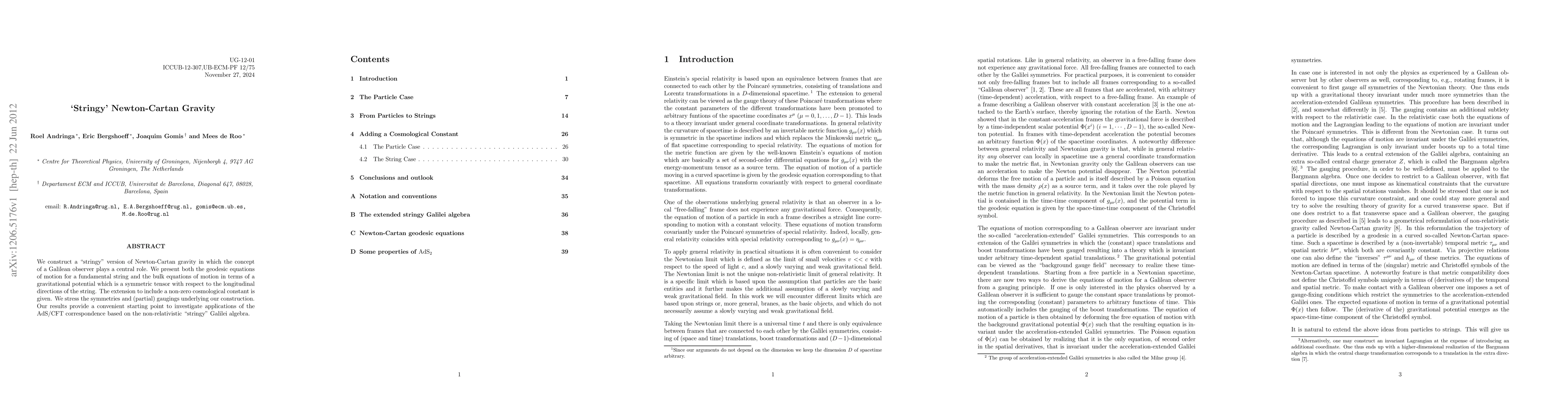 This paper constructs a "stringy" version of Newton-Cartan gravity, focusing on Galilean observers, and presents equations of motion for a fundamental string and bulk gravity. The work extends to include a non-zero cosmological constant and highlights the symmetries and gaugings of the model.