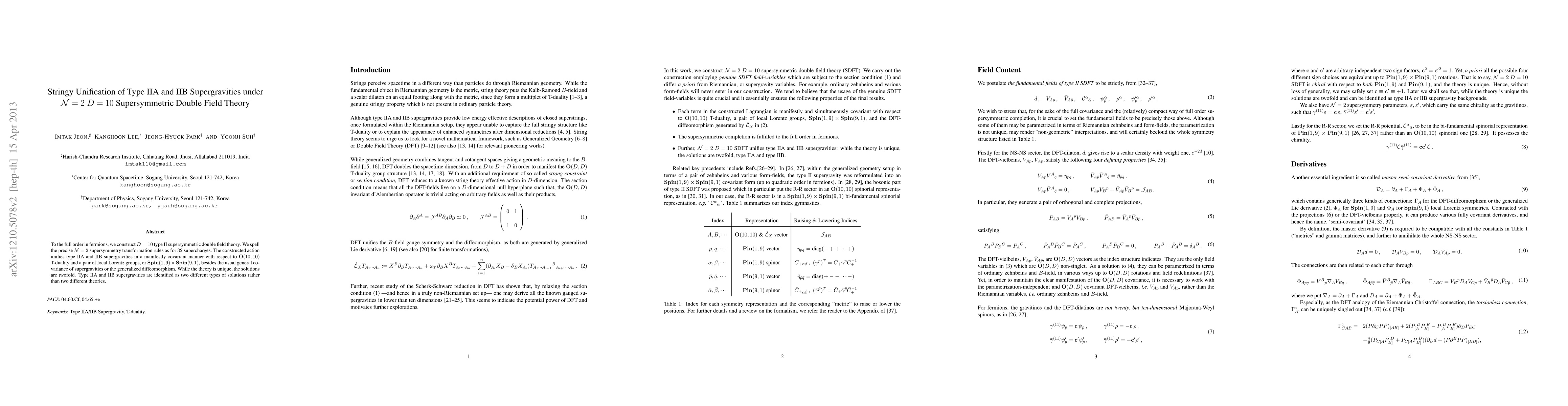 This paper constructs a D=10 type II supersymmetric double field theory that unifies type IIA and IIB supergravities under N=2 supersymmetry, revealing them as distinct solutions within a single framework. The theory respects O(10,10) T-duality and local Lorentz symmetries, alongside general covariance.