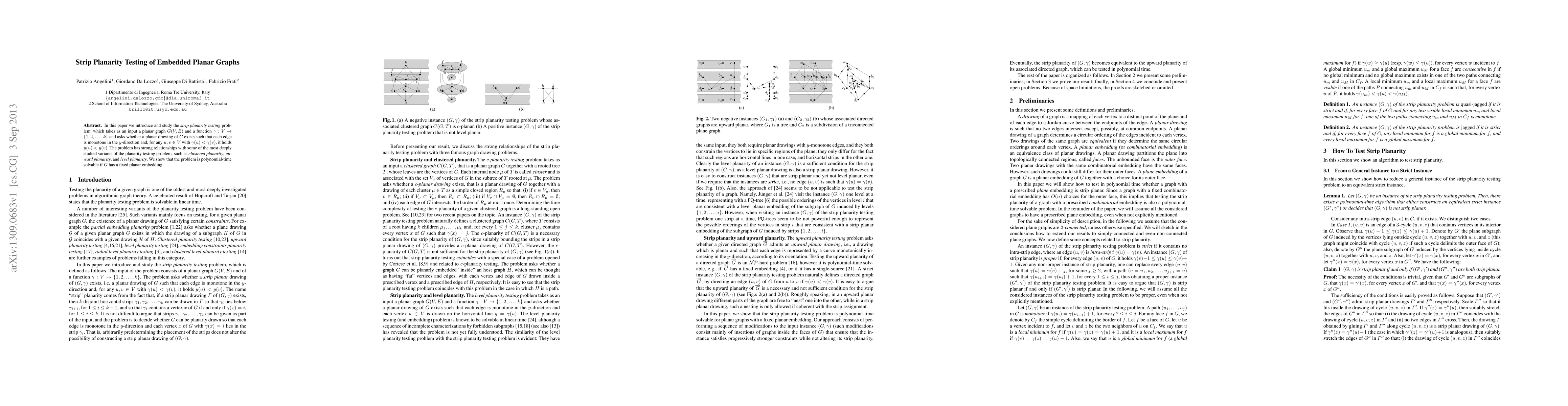 This paper introduces the strip planarity testing problem, which determines if a planar graph can be drawn with edges monotone in the $y$-direction and vertices ordered by a given function. It demonstrates that this problem can be solved in polynomial time when the graph has a fixed planar embedding.