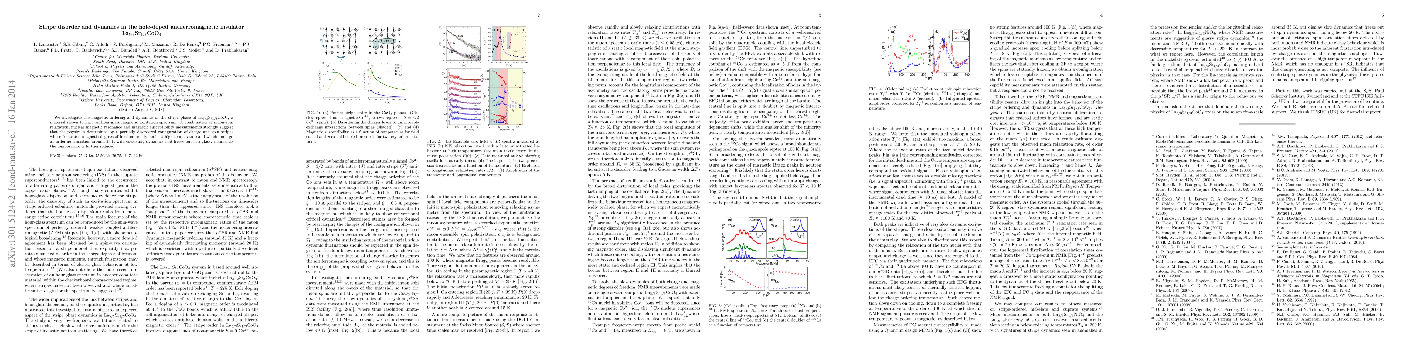 Researchers investigated the dynamics of stripes in a specific material, finding that its magnetic degrees of freedom freeze out in a glassy manner as temperature decreases, contradicting previous predictions about complete charge quenching.