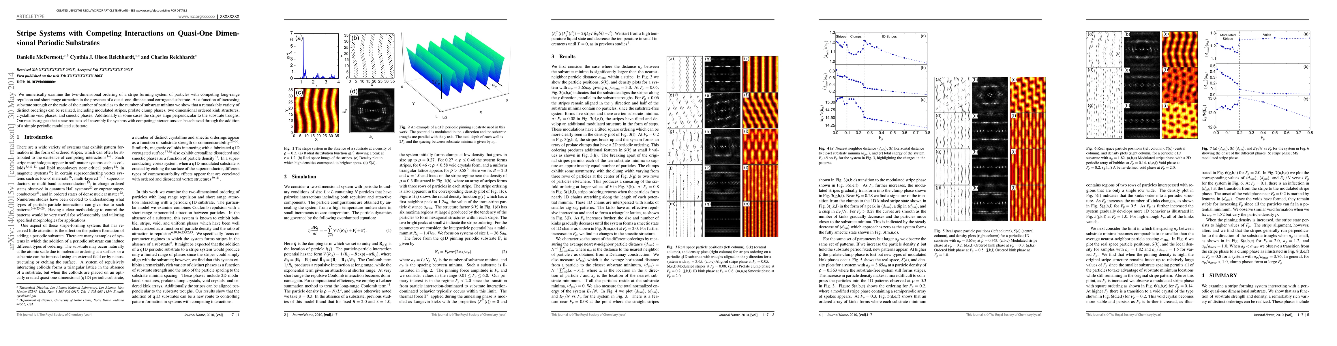 This research numerically investigates the self-assembly of particles with competing interactions on a quasi-one-dimensional periodic substrate, revealing diverse orderings such as modulated stripes, clump phases, and crystalline voids. The study suggests that a modulated substrate can induce a variety of distinct structures, offering a new pathway for self-assembly in such systems.