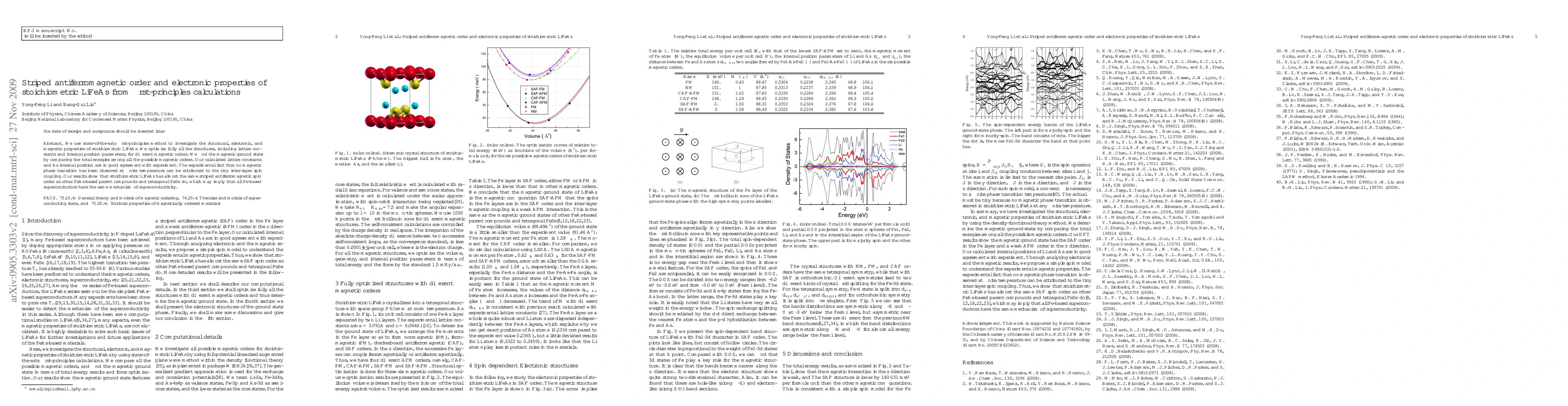 This study uses first-principles calculations to explore the structural, electronic, and magnetic properties of LiFeAs, finding it exhibits a striped antiferromagnetic order similar to other FeAs-based compounds. The absence of magnetic phase transitions at finite temperatures is explained by minimal inter-layer spin coupling.