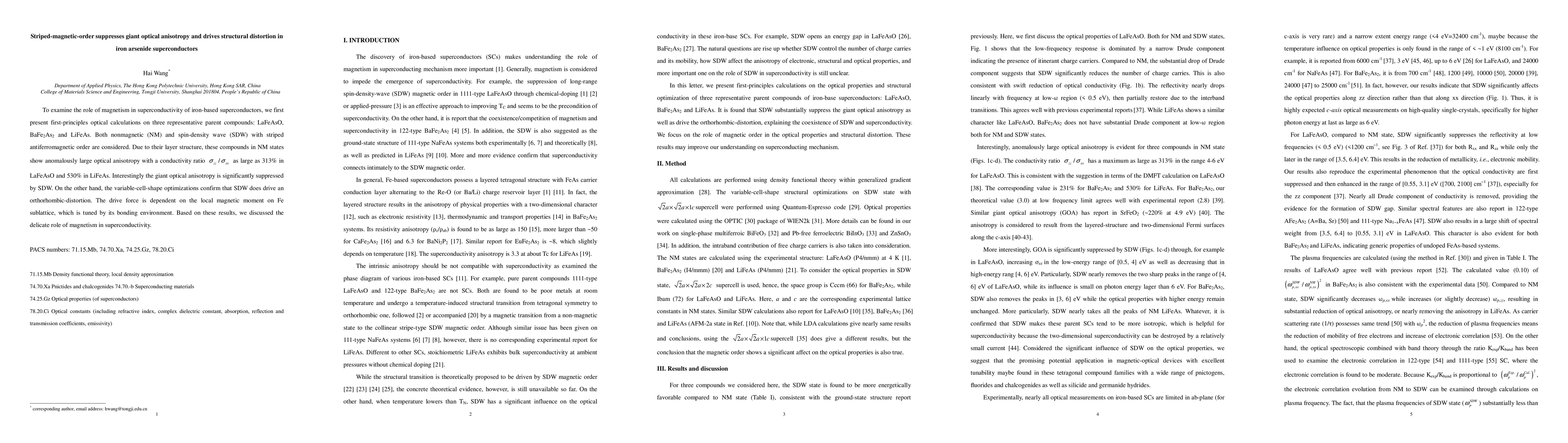 To examine the role of magnetism in superconductivity of iron-based superconductors, we first present first-principles optical calculations on three representative parent compounds: LaFeAsO, BaFe2As2 and LiFeAs. Both nonmagnetic (NM) and spin-density wave (SDW) with striped antiferromagnetic order are considered. Due to their layer structure, these compounds in NM states show anomalously large optical anisotropy with a conductivity ratio $\sigma_{zz}/\sigma{xx}$ as large as 313% in LaFeAsO and 530% in LiFeAs. Interestingly the giant optical anisotropy is significantly suppressed by SDW. On the other hand, the variable-cell-shape optimizations confirm that SDW does drive an orthorhombic-distortion. The drive force is dependent on the local magnetic moment on Fe sublattice, which is tuned by its bonding environment. Based on these results, we discussed the delicate role of magnetism in superconductivity.