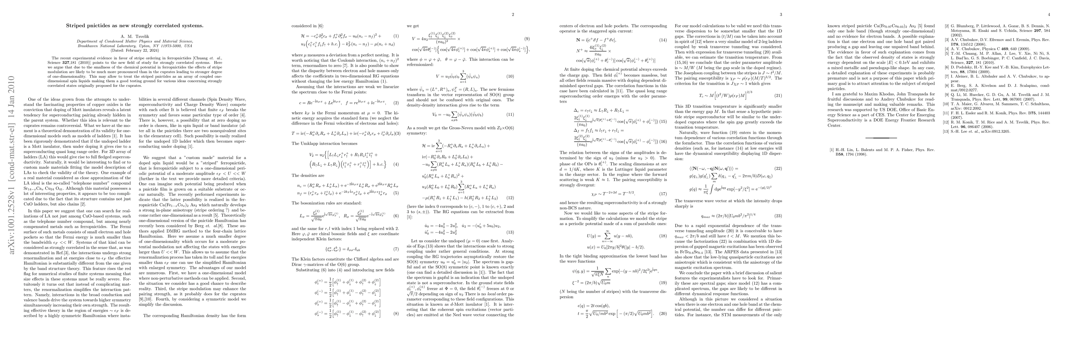 This paper discusses the emergence of stripe ordering in ferropnictides as a new area of study for strongly correlated systems, suggesting that the pronounced effects of stripe modulation due to small chemical potentials may lead to a stronger degree of one-dimensionality compared to cuprates. It proposes that striped pnictides could serve as an ideal model for testing theories of strongly correlated states.