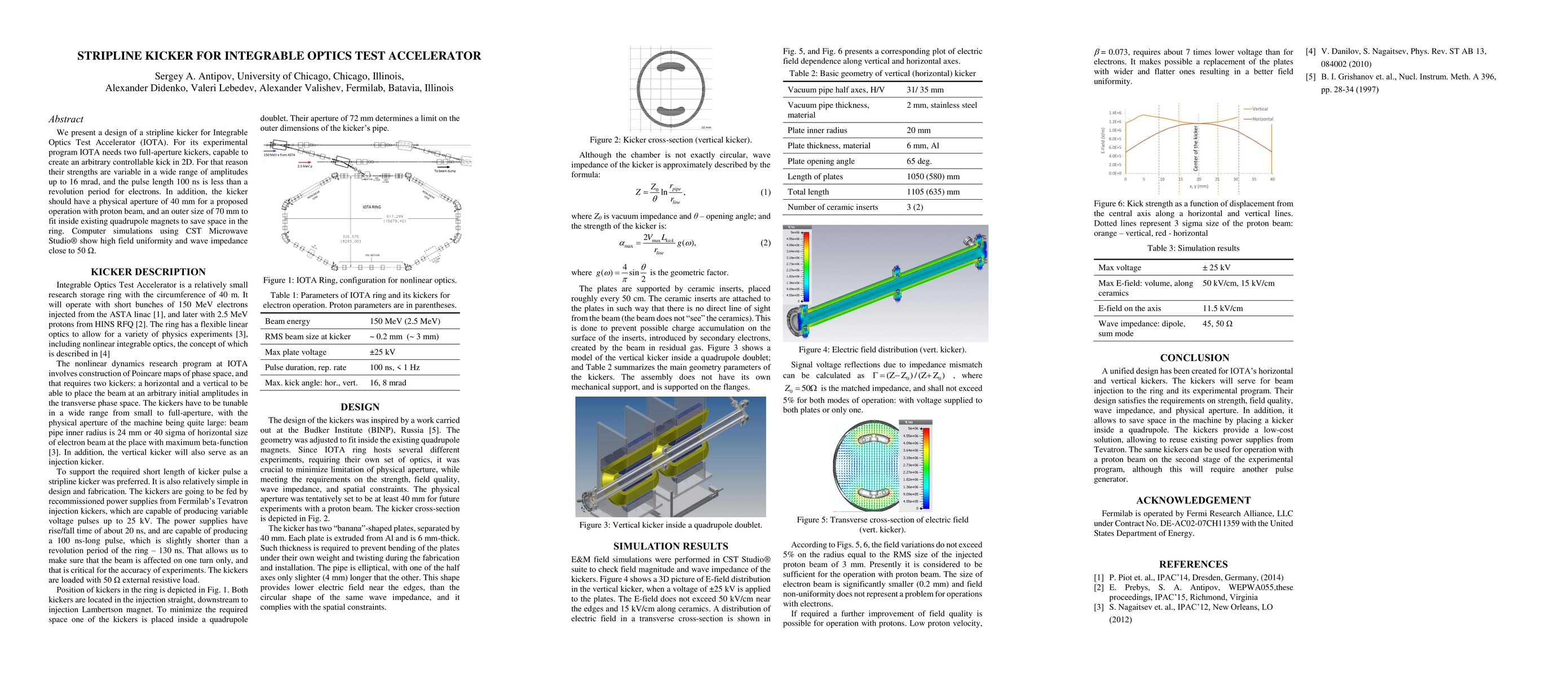We present a design of a stripline kicker for Integrable Optics Test Accelerator (IOTA). For its experimental program IOTA needs two full-aperture kickers, capable to create an arbitrary controllable kick in 2D. For that reason their strengths are variable in a wide range of amplitudes up to 16 mrad, and the pulse length 100 ns is less than a revolution period for electrons. In addition, the kicker should have a physical aperture of 40 mm for a proposed operation with proton beam, and an outer size of 70 mm to fit inside existing quadrupole magnets to save space in the ring. Computer simulations using CST Microwave Studio show high field uniformity and wave impedance close to 50 {\Omega}.