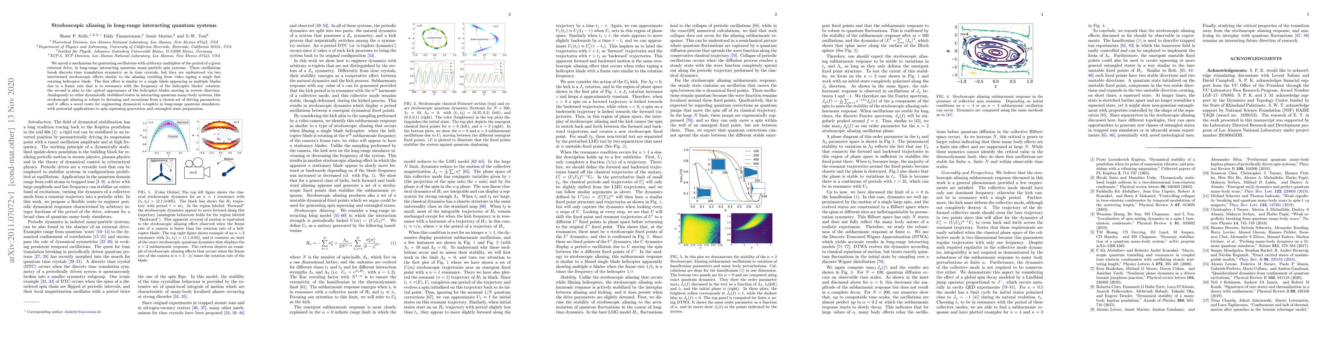 This paper explores a mechanism in long-range interacting quantum systems that generates oscillations with multiple periods of an external drive, akin to stroboscopic aliasing. It reveals robustness to parameter deviations and potential applications in quantum simulation, including spin squeezing and entangled state preparation.