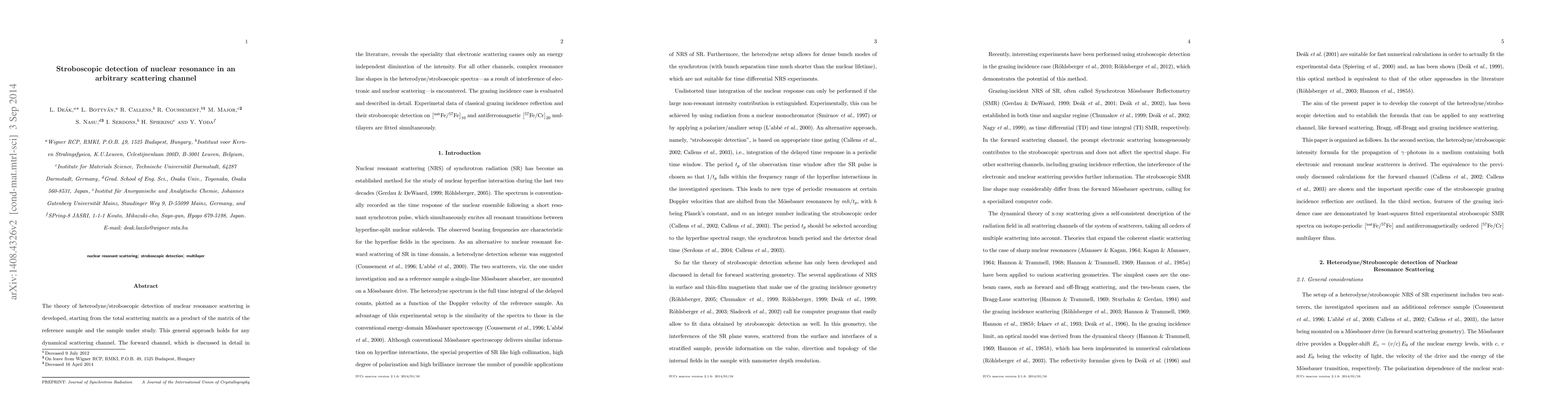The theory of heterodyne/stroboscopic detection of nuclear resonance scattering is developed, starting from the total scattering matrix as a product of the matrix of the reference sample and the sample under study. This general approach holds for any dynamical scattering channel. The forward channel, which is discussed in detail in the literature, reveals the speciality that electronic scattering causes only an energy independent diminution of the intensity. For all other channels, complex resonance line shapes in the heterodyne/stroboscopic spectra - as a result of interference of electronic and nuclear scattering - is encountered. The grazing incidence case is evaluated and described in detail. Experimetal data of classical grazing incidence reflection and their stroboscopic detection on [natFe/57Fe]10 and antiferromagnetic [57Fe/Cr]20 multilayers are fitted simultaneously.
