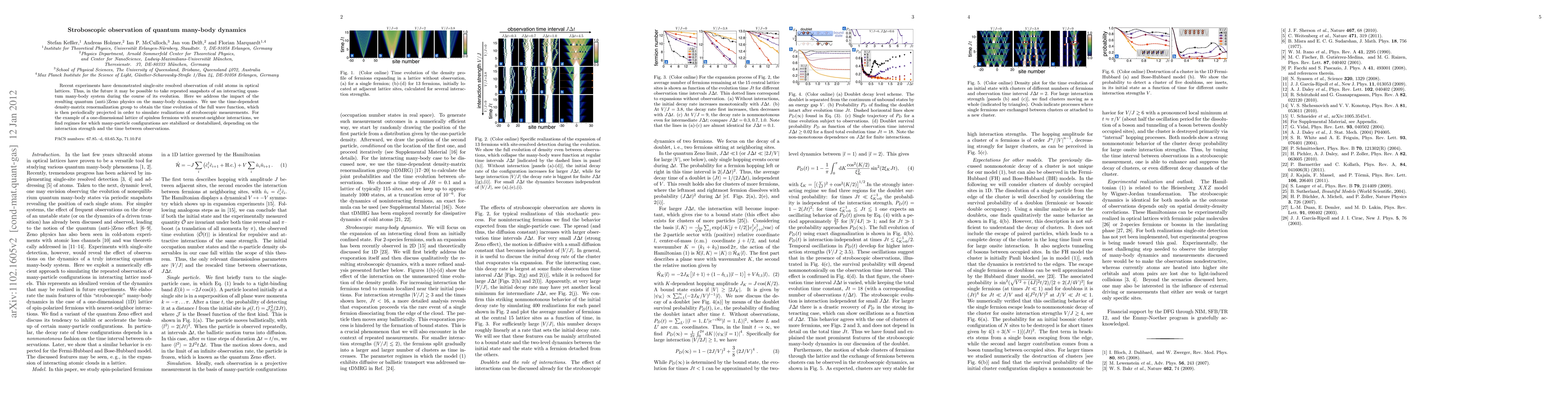 Recent experiments have demonstrated single-site resolved observation of cold atoms in optical lattices. Thus, in the future it may be possible to take repeated snapshots of an interacting quantum many-body system during the course of its evolution. Here we address the impact of the resulting Quantum (anti-)Zeno physics on the many-body dynamics. We use the time-dependent density-matrix renormalization group to obtain the time evolution of the full many-body wave function, which is then periodically projected in order to simulate realizations of stroboscopic measurements. For the example of a one-dimensional lattice of spin-polarized fermions with nearest-neighbor interactions, we find regimes for which many-particle configurations are stabilized and destabilized depending on the interaction strength and the time between observations.