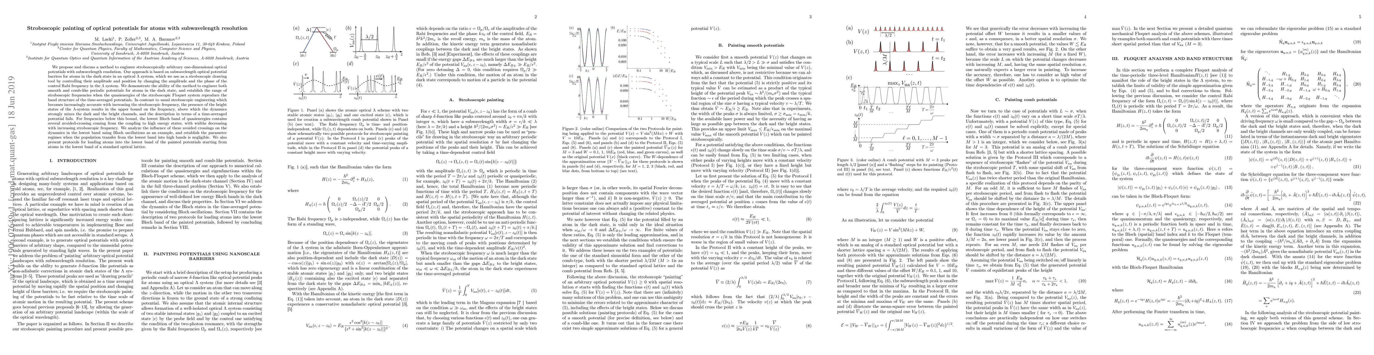 We propose and discuss a method to engineer stroboscopically arbitrary one-dimensional optical potentials with subwavelength resolution. Our approach is based on subwavelength optical potential barriers for atoms in the dark state in an optical \Lambda system, which we use as a stroboscopic drawing tool by controlling their amplitude and position by changing the amplitude and the phase of the control Rabi frequency in the \Lambda system. We demonstrate the ability of the method to engineer both smooth and comb-like periodic potentials for atoms in the dark state, and establish the range of stroboscopic frequencies when the quasienergies of the stroboscopic Floquet system reproduce the band structure of the time-averaged potentials. In contrast to usual stroboscopic engineering which becomes increasingly accurate with increasing the stroboscopic frequency, the presence of the bright states of the \Lambda-system results in the upper bound on the frequency, above which the dynamics strongly mixes the dark and the bright channels, and the description in terms of a time-averaged potential fails. For frequencies below this bound, the lowest Bloch band of quasienergies contains several avoided-crossing coming from the coupling to high energy states, with widths decreasing with increasing stroboscopic frequency. We analyze the influence of these avoided crossings on the dynamics in the lowest band using Bloch oscillations as an example, and establish the parameter regimes when the population transfer from the lowest band into high bands is negligible. We also present protocols for loading atoms into the lowest band of the painted potentials starting from atoms in the lowest band of a standard optical lattice.