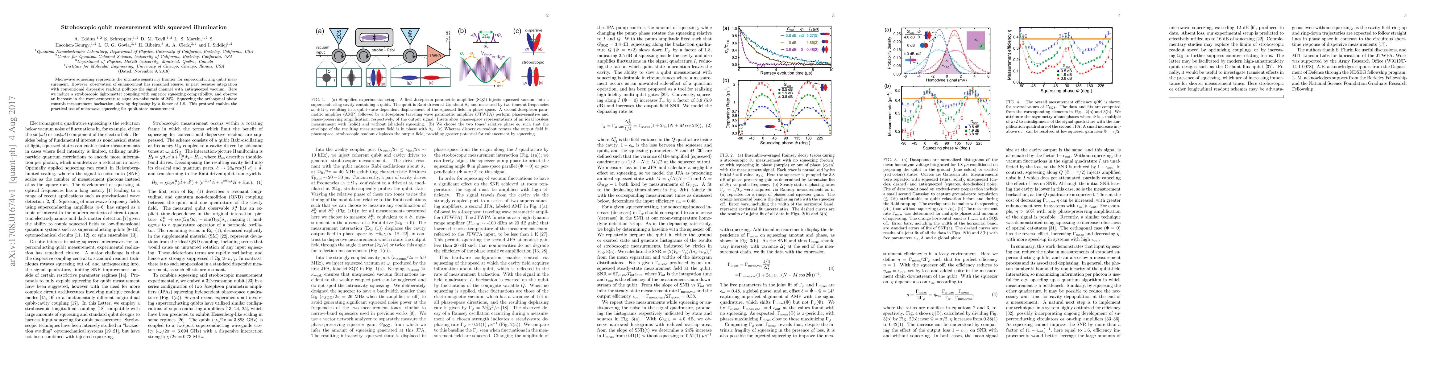 Microwave squeezing represents the ultimate sensitivity frontier for superconducting qubit measurement. However, observation of enhancement has remained elusive, in part because integration with conventional dispersive readout pollutes the signal channel with antisqueezed vacuum. Here we induce a stroboscopic light-matter coupling with superior squeezing compatibility, and observe an increase in the room-temperature signal-to-noise ratio of 24%. Squeezing the orthogonal phase controls measurement backaction, slowing dephasing by a factor of 1.8. This protocol enables the practical use of microwave squeezing for qubit state measurement.