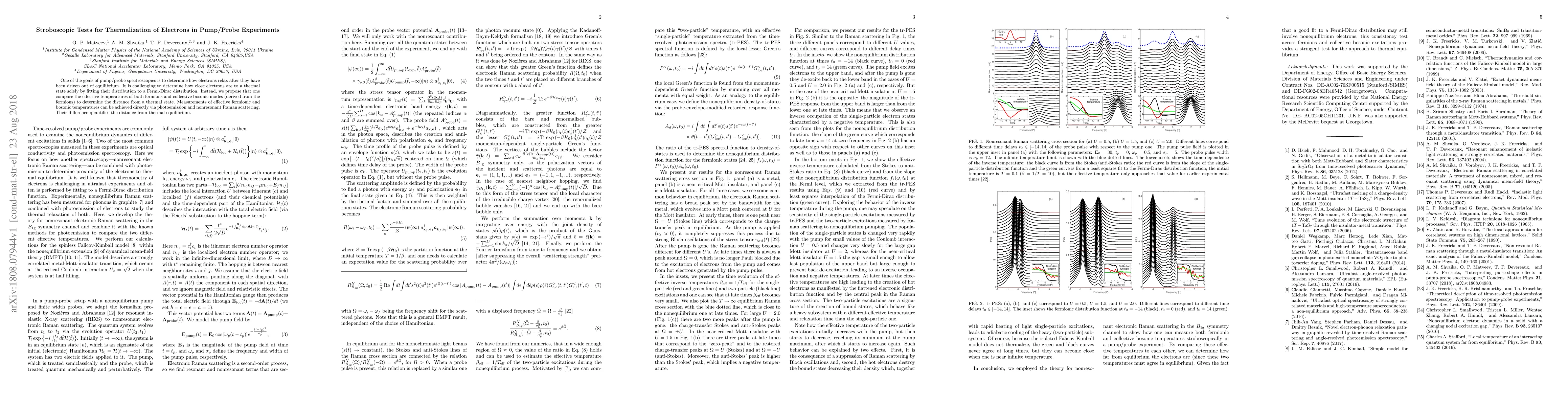 One of the goals of pump/probe spectroscopies is to determine how electrons relax after they have been driven out of equilibrium. It is challenging to determine how close electrons are to a thermal state solely by fitting their distribution to a Fermi-Dirac distribution. Instead, we propose that one compare the effective temperatures of both fermions and collective bosonic modes (derived from the fermions) to determine the distance from a thermal state. Measurements of effective fermionic and bosonic temperatures can be achieved directly via photoemission and nonresonant Raman scattering. Their difference quantifies the distance from thermal equilibrium.