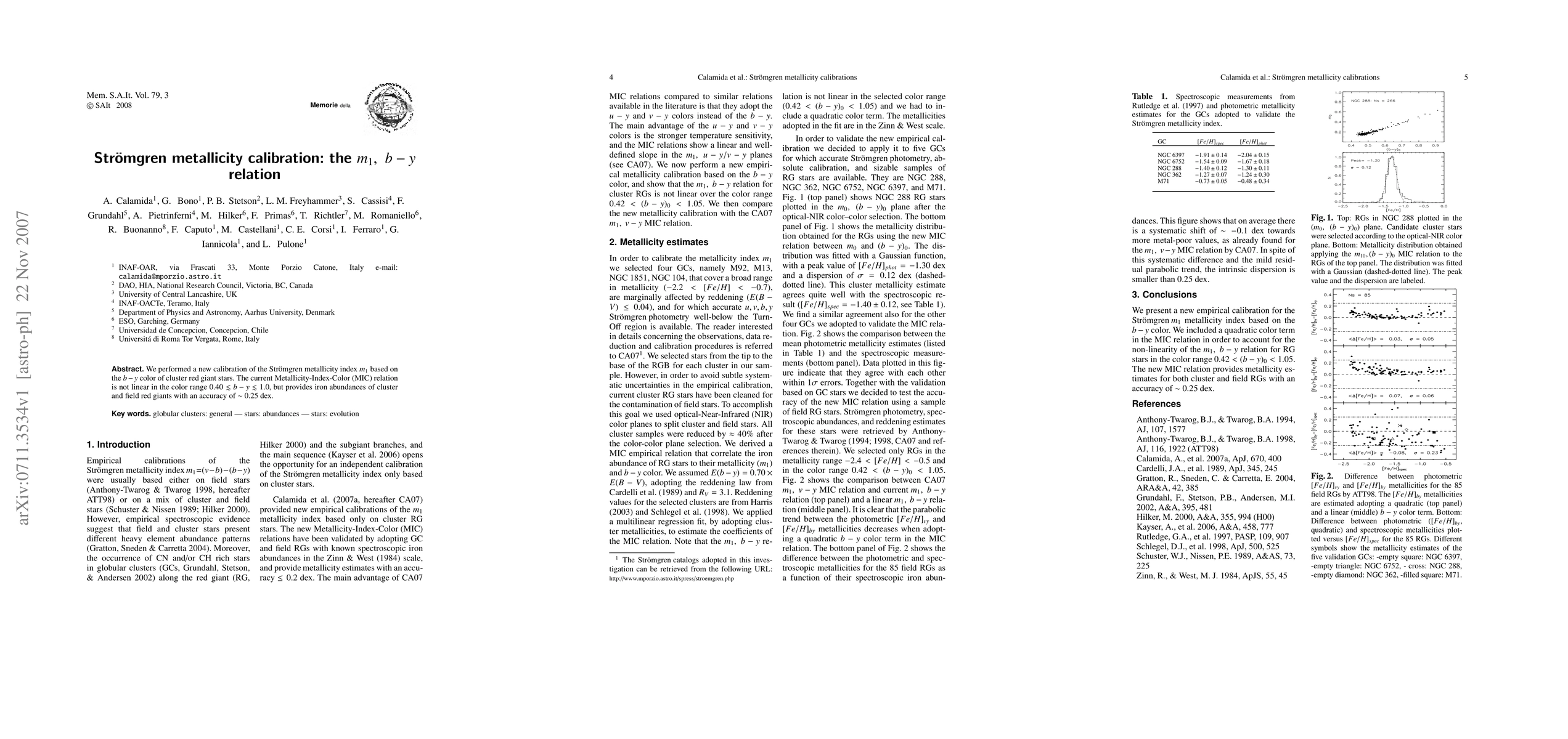 We performed a new calibration of the Stroemgren metallicity index m1 based on the b-y color of cluster red giant stars. The current Metallicity-Index-Color relation is not linear in the color range 0.40 < b-y < 1.0, but provides iron abundances of cluster and field red giants with an accuracy of ~ 0.25 dex.