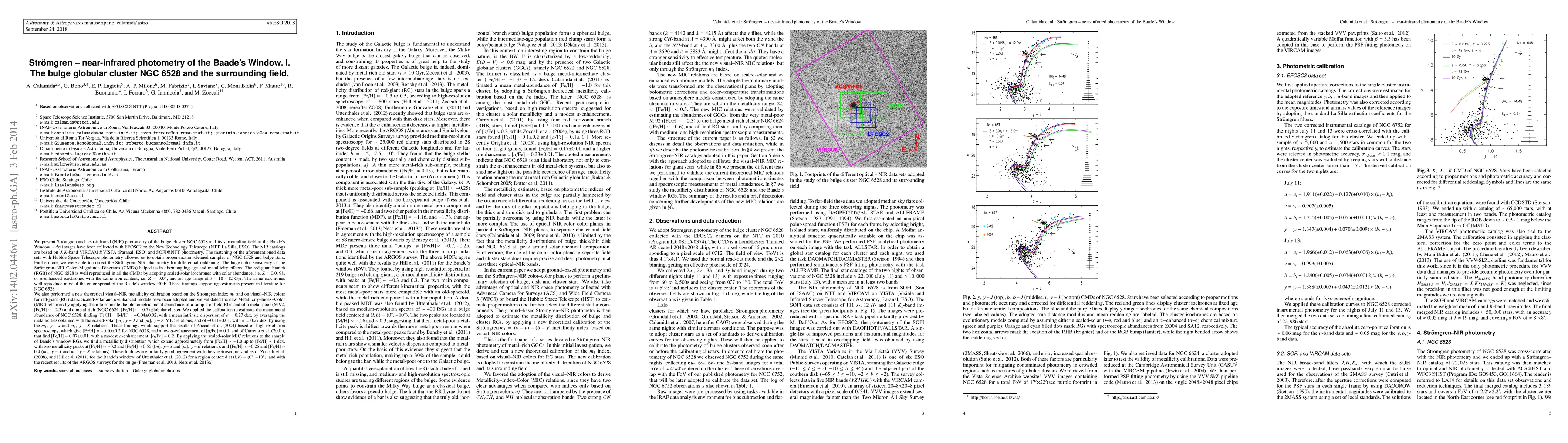 This paper presents Stroemgren-NIR photometry of the globular cluster NGC6528 in Baade's Window, revealing an age of 11±1 Gyr and a metallicity of [Fe/H] = -0.04±0.02, supporting previous estimates and indicating a wide metallicity distribution in the surrounding field.