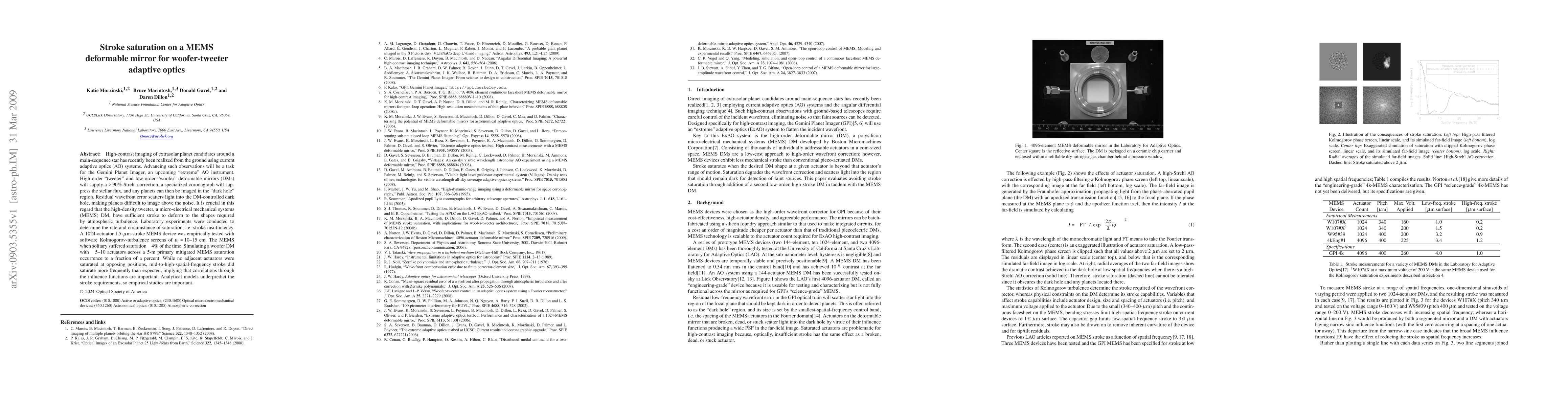 This paper investigates the stroke saturation of a MEMS deformable mirror used in adaptive optics for high-contrast imaging of extrasolar planets. Laboratory tests show that a 1024-actuator MEMS device can suffer saturation, but integrating it with a woofer DM significantly reduces this issue, highlighting the importance of empirical studies over analytical models.