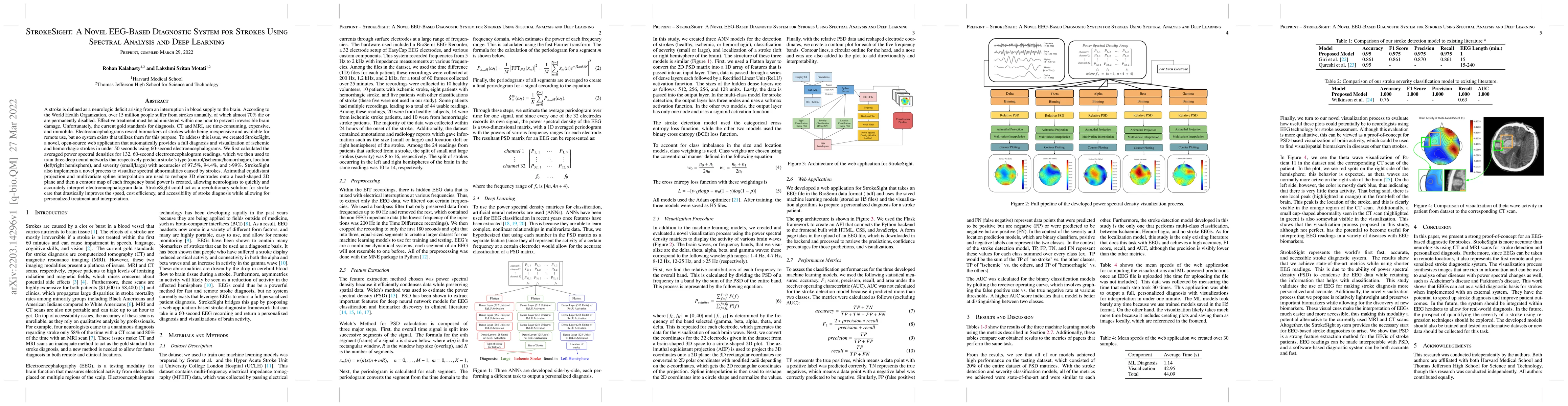 This study employed a combination of spectral analysis and deep learning techniques to develop an EEG-based diagnostic system for stroke detection.