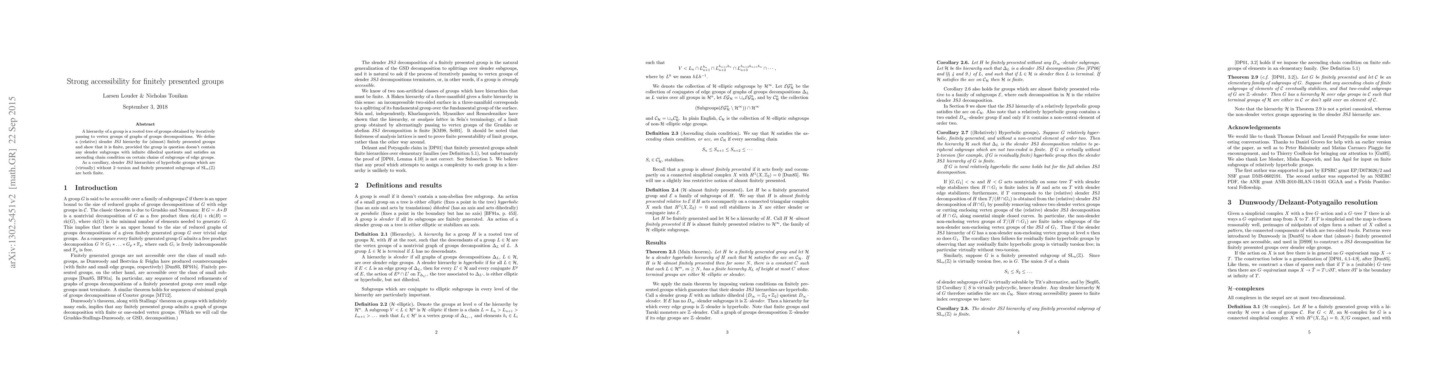 This paper establishes a finite (relative) slender JSJ hierarchy for almost finitely presented groups under specific conditions, ensuring that slender subgroups with infinite dihedral quotients are absent and certain subgroup chains are ascending. As a result, such hierarchies for hyperbolic groups without 2-torsion and finitely presented subgroups of SL(n,Z) are finite.
