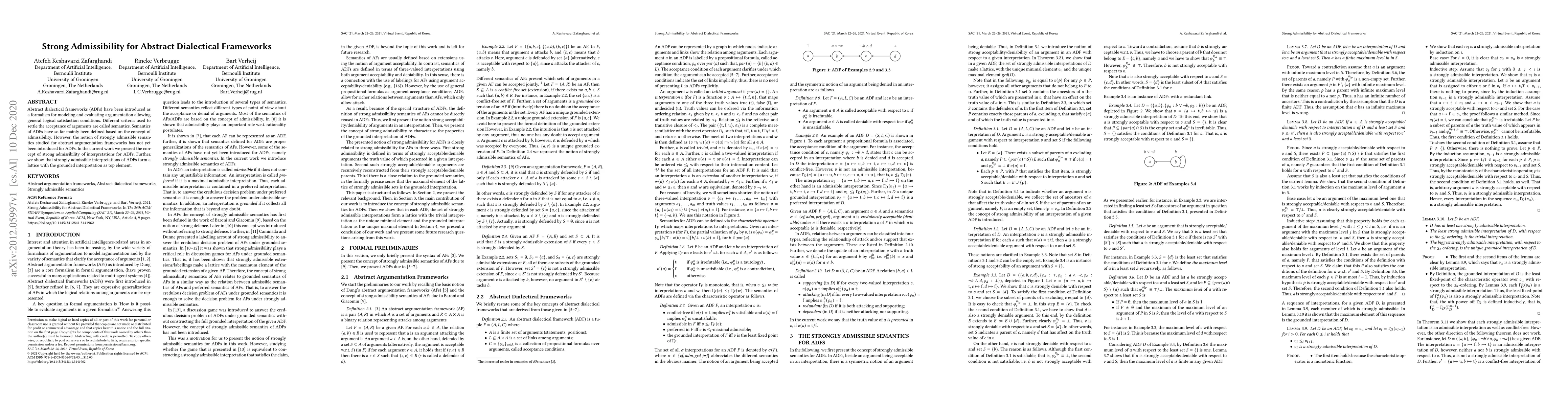 This paper introduces the concept of strong admissibility for abstract dialectical frameworks (ADFs), extending the notion from abstract argumentation frameworks. It demonstrates that strongly admissible interpretations of ADFs form a lattice, with the grounded interpretation as the top element.