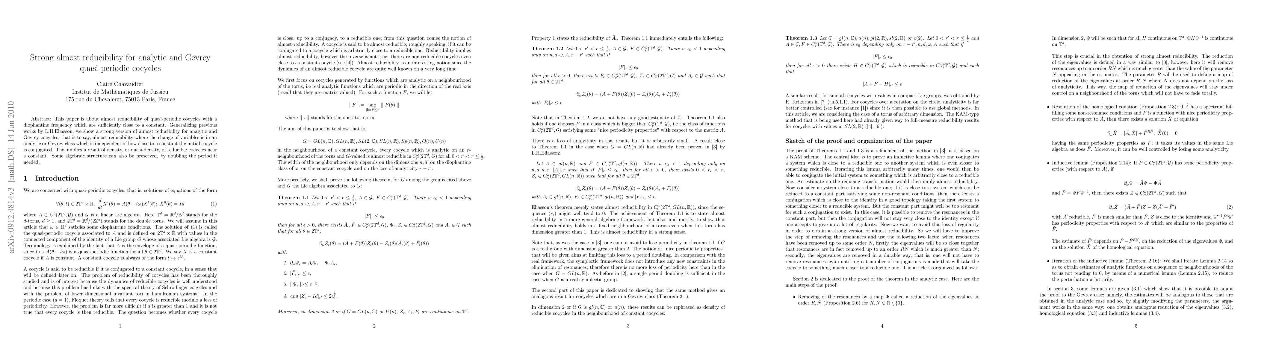 This paper generalizes previous works on the almost reducibility of quasi-periodic cocycles, showing strong almost reducibility for analytic and Gevrey cocycles, where the change of variables remains in an independent class regardless of proximity to a constant. It implies quasi-density of reducible cocycles near constants and preserves some algebraic structure by potentially doubling the period.