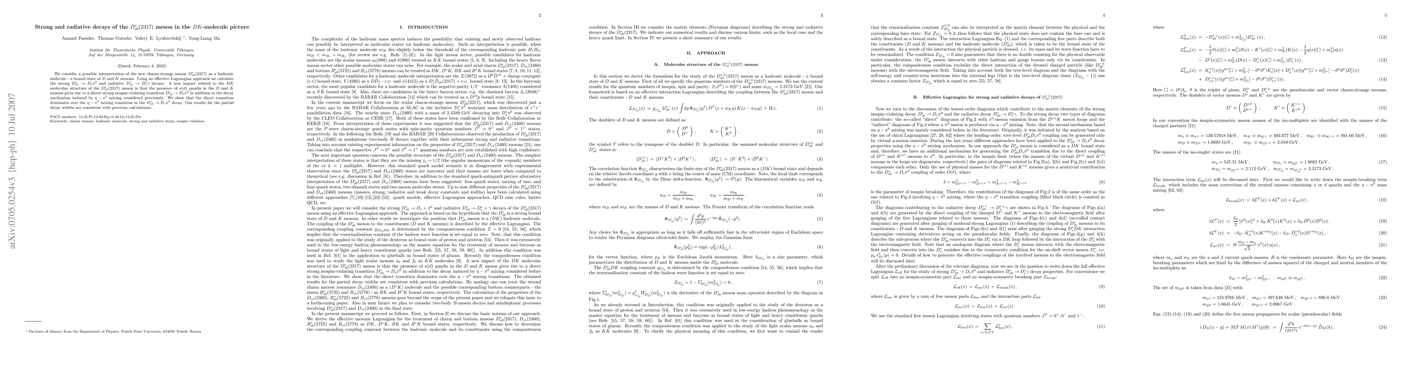 Researchers propose the Ds0*(2317) meson as a hadronic molecule composed of D and K mesons, calculating its strong decay to Ds pi0 and radiative decay to Ds* gamma. The direct strong isospin-violating transition dominates over previously considered eta-pi0 mixing.
