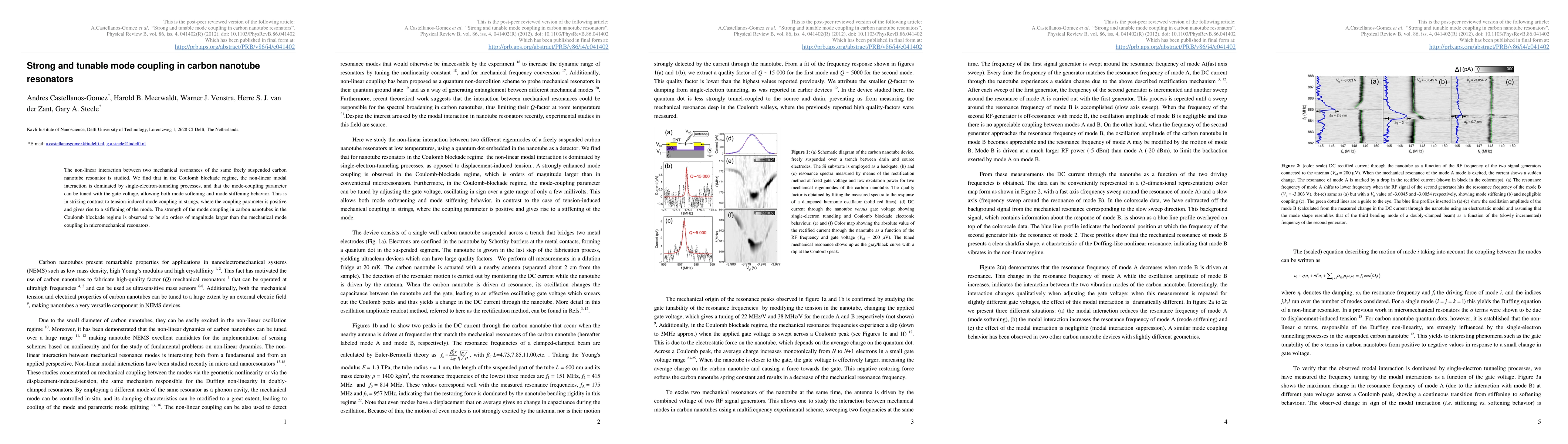 This study investigates the non-linear interaction between two mechanical resonances in carbon nanotube resonators, revealing strong mode coupling dominated by single-electron-tunneling processes in the Coulomb blockade regime. The mode-coupling parameter can be tuned via gate voltage, enabling both softening and stiffening behaviors, contrasting with tension-induced coupling in strings.