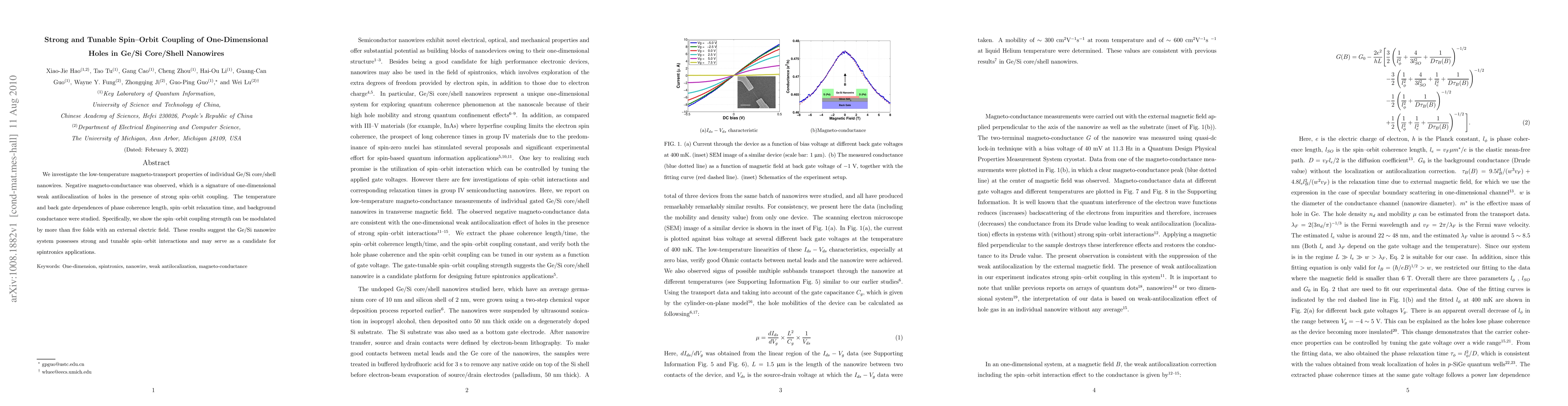 This study reveals strong and tunable spin-orbit coupling in Ge/Si core/shell nanowires, evidenced by negative magneto-conductance due to weak antilocalization, and shows that the coupling strength can be significantly modulated by external electric fields, indicating potential for spintronics applications.