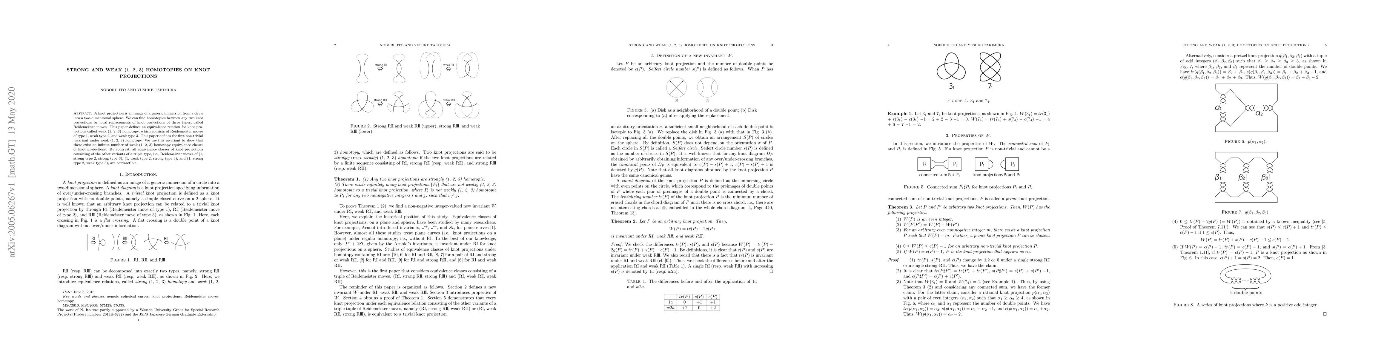This paper introduces weak (1, 2, 3) homotopy as an equivalence relation for knot projections, employing Reidemeister moves and identifying the first non-trivial invariant under this relation. It demonstrates the existence of infinitely many equivalence classes under this new homotopy type, contrasting with other homotopy types where all classes are contractible.