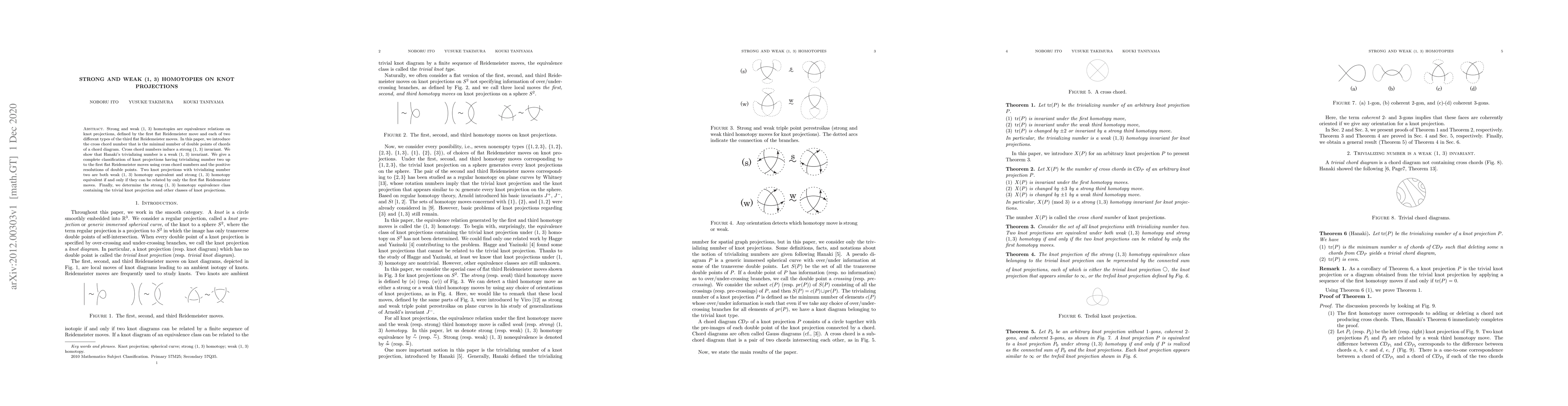 This paper explores strong and weak (1, 3) homotopies on knot projections, classifying them based on the minimal number of double points, known as cross chord numbers. It establishes that Hanaki's trivializing number is a weak (1, 3) invariant and provides a complete classification of knot projections with trivializing number two.