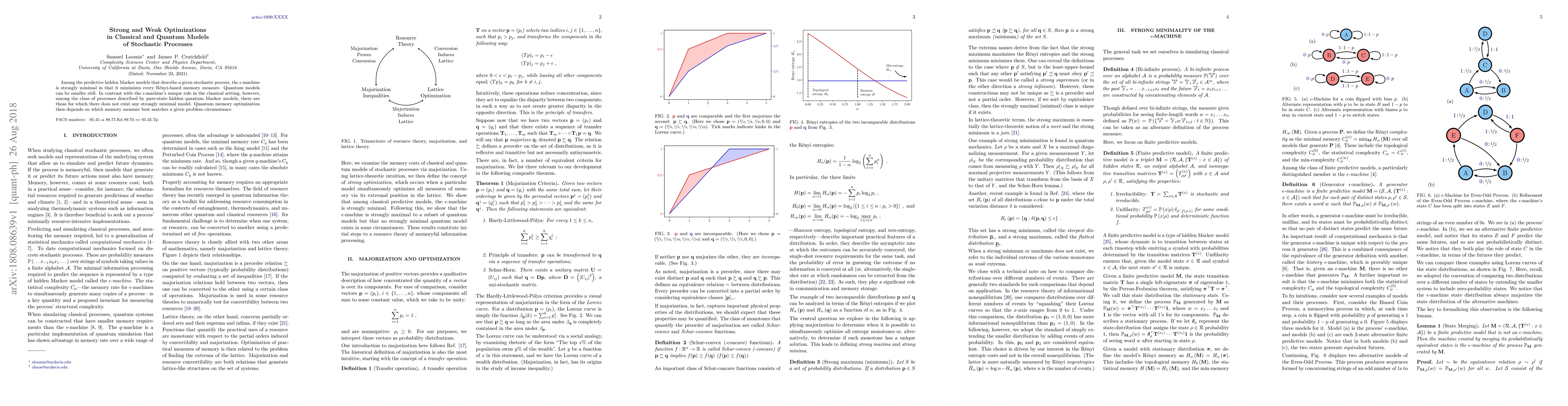 Among the predictive hidden Markov models that describe a given stochastic process, the {\epsilon}-machine is strongly minimal in that it minimizes every R\'enyi-based memory measure. Quantum models can be smaller still. In contrast with the {\epsilon}-machine's unique role in the classical setting, however, among the class of processes described by pure-state hidden quantum Markov models, there are those for which there does not exist any strongly minimal model. Quantum memory optimization then depends on which memory measure best matches a given problem circumstance.