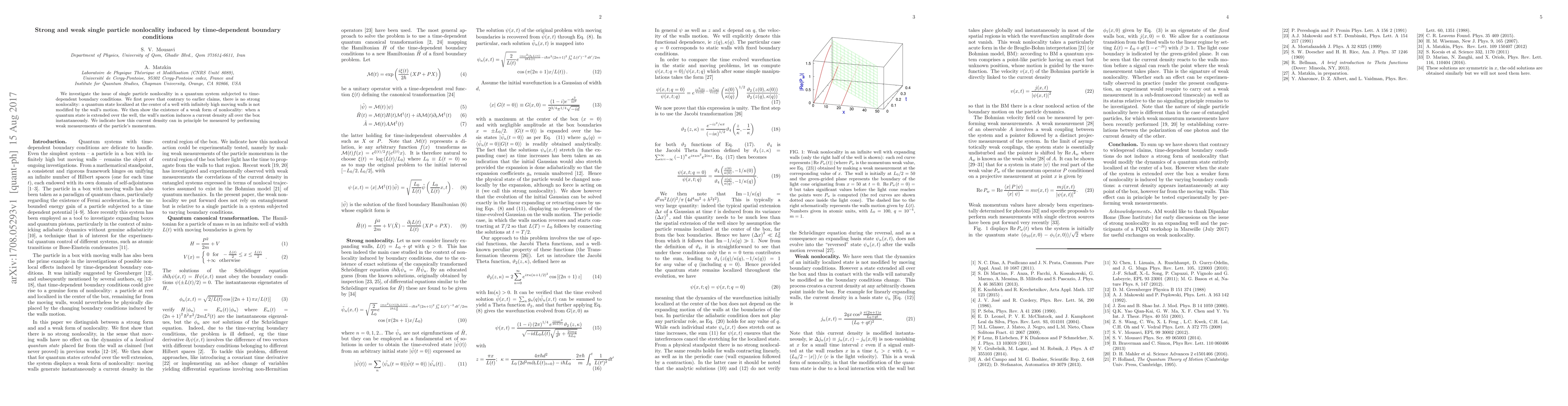 Researchers investigated single particle nonlocality in a quantum system with time-dependent boundary conditions, finding no strong nonlocality but a weak form of nonlocality that induces current density instantly.