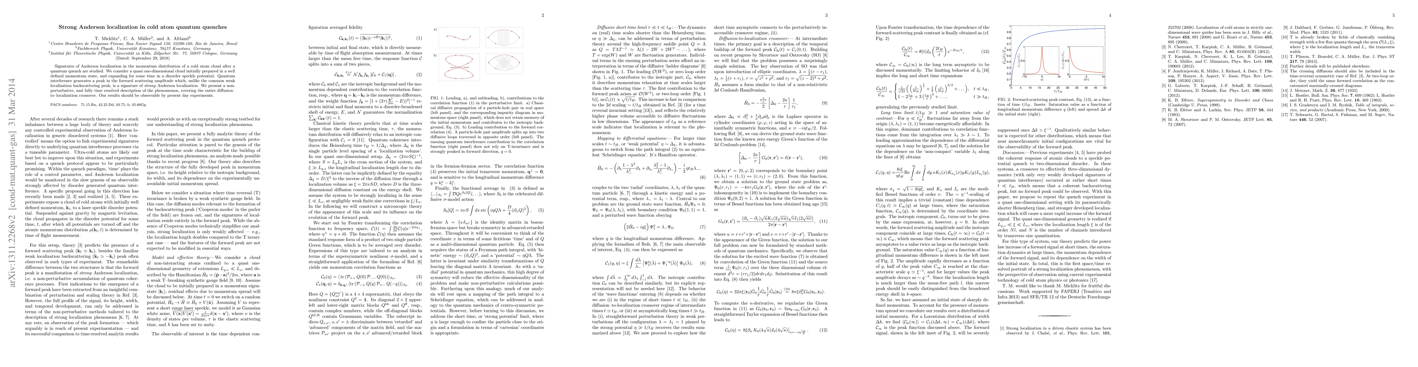 The study reveals strong Anderson localization in cold atom quantum quenches, showing a coherence peak in forward scattering direction due to disorder, with a microscopic time-resolved description covering the diffusion-localization transition, observable with current technology.